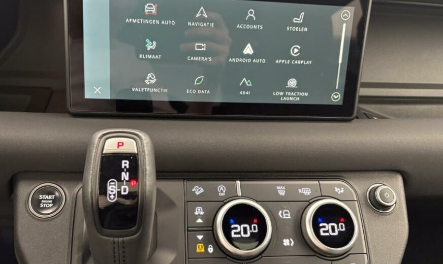 CO2:239gr/km 005cm, 005cn, remote, two-zone climate control, voice control, digital audio broadcast dab radio, meridian™ sound system, pivi diamond, navigation pro, wi-fi, sos assistance call, online pack with data plan, front passenger seat isofix, loadspace partition net, isofix row 2 isize, pivi pro connected , twin front cupholders, electronic air suspension, adaptive dynamics, open differential with torque vectoring by braking, black exposed rear recovery eyes, towing eye cover narvik black, auto high beam assist ahba , heated, electric, power fold door mirrors with approach lights and auto-dimming driver side, auto-dimming interior rear view mirror, ebony headlining, non-leather steering wheel, heated front seats, rear centre headrest, map pocket net, driver and passenger seat memory, rear armrest with twin cupholders, 40:20:40 split fold rear seat, door armrest - pu, ebony / ebony, euro/armen/kazakh 3yr conn. service pack, tyre config 1, speedometer kph, ip contrast - ebony/ebony, interactive driver display, x-dyn + black pack, stop/start, centre console with armrest, x-dynamic treadplate, manually adjustable steering column, powerpack 23, locking wheel nuts, black roof rails, tyre pressure monitoring system tpms , 19\\\" wheel, loadspace cover, ip insert dark grey, front fog lights, automatic headlight levelling, daytime running lights drl , led tail lights, grille narvik black/narvik blck surround, configurable cabin lighting, led headlights with signature drl, cruise control and speed limiter, emergency braking, keyless entry, tailgate/bootlid-side hinged, wade sensing, double locking, intrusion sensor, active transmission warming, black contrast roof, body-coloured door handles, gloss black side vents, bmpr lwr vlc narvik black, cladding/sill narvik black, gloss black bonnet louvres, int env col ebony, lane keep assist, traffic sign recognition and adaptive speed limiter, driver condition monitor, blind spot assist, 3d surround camera, forward facing camera, rear traffic monitor, connected navigation pro, 10\\\" touchscreen, nav region 1 europe, terrain response, morzine headlining, ip pu, console finisher-pu, aerodynamic capability, non-smoker\\\'s pack, enterprise bill of material yes, vehicle support structure - yes, variant - yes, tyre recommended plate non english, sunvisors with illuminated vanity mirrors, resist gearshift, power output - 300ps, body-coloured bonnet, front seat cushion power fore/aft, front seat cushion power height, front seat cushion power tilt, front seat squab power recline, front headrest manual height, front seat lumbar - 4 way, apple carplay® subject to availability , android auto™ subject to availability , connected navigation data, esim, ebony morzine headlining, 360° parking aid, 3.0 aj20 d6h 200bs, 3.0 aj20 d6h, grab hndle fin eiger grey painted, end caps dark grey non-etched, 40:20:40 folding rear seats with centre armrest, defender, pvu perforated robustec, group 1, d7u, x-dynamic se, styling - x-dynamic, nitra plant, interior enviroment pack 27, auto 8 speed trans - 8hp76, ebony/ebony resist and robustec seats with ebony interior, 19\\\" full size spare wheel, 19\\\" style 6010, gloss black, production build for retailer ordering, silicon silver, privacy glass, 12-way heated, electric memory front seats with 2-way manual headrests, 23.5my, body-coloured spare wheel cover, secure tracker pro, x-dynamic se 300ps auto, extended black exterior pack, cross car beam in dark grey powder coat finish, sliding panoramic roof, black contrast signature graphic with interior storage
