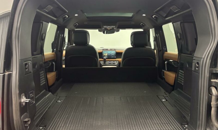 CO2:228gr/km cold climate pack, 005cm, 005cn, remote, 016xx, 021gz, 021qa, two-zone climate control, 022fb, 022ga, 022la, 024aa, 025cw, voice control, 025fw, digital audio broadcast dab radio, meridian™ sound system, pivi diamond, navigation gsr-ii, wi-fi, sos assistance call, online pack with data plan, 025sf, 026bk, front passenger seat isofix, loadspace partition net, isofix row 2 isize, pivi pro connected , twin front cupholders, electronic air suspension, adaptive dynamics, open differential with torque vectoring by braking, 027zy, 027zz, black exposed rear recovery eyes, electrically deployable tow bar, towing eye cover narvik black, 028qa, 029fk, 030nv, heated, electric, power fold door mirrors with approach lights and auto-dimming driver side, 275/45 r22 as hl, auto-dimming interior rear view mirror, ebony headlining, extended leather upgrade, 032ua, rear centre headrest, map pocket net, heated and cooled front seats, driver and passenger seat memory, door armrest - premium leather, rear armrest with twin cupholders, 40:20:40 split fold rear seat, 033lr, 033lv, 033rj, 033rq, 033va, 033xh, ebony/vintage tan, 035aa, euro/armen/kazakh 3yr conn. service pack, tyre config 1, 037xx, speedometer kph, front driver display, ip contrast - ebony/vintage tan, x-dyn + black pack, 039ia, stop/start, sliding panoramic roof, 041pa, 043bc, centre console with armrest, signature graphic with interior storage , x-dynamic treadplate, electrically adjustable steering column, front wheel steering, 053fa, 054da, powerpack 02, locking wheel nuts, 056aa, 056ah, 056bk, black roof rails, 061ca, tyre pressure monitoring system tpms , 22\\\" wheel, 062zz, loadspace cover, ip insert dark grey, front fog lights, automatic headlight levelling, daytime running lights drl , led tail lights, grille narvik black/narvik blck surround, configurable cabin lighting, adaptive cruise control, emergency braking, keyless entry, 066cz, 068ac, side hinged tailgate/bootlid, wade sensing, double locking, intrusion sensor, 076ez, active transmission warming, 078zx, 079ax, 079fz, body-coloured door handles, gloss black side vents, bmpr lwr vlc narvik black, cladding/sill narvik black, 080ua, gloss black bonnet louvres, int env col ebony, lane keep assist, traffic sign recognition and adaptive speed limiter, driver condition monitor, blind spot assist, 3d surround camera, forward facing camera, rear traffic monitor, rear collision monitor, 11.4\\\" touchscreen, connected navigation pro, 087fa, nav region 1 europe, terrain response, 088gj, morzine headlining, ip - windsor leather with stitch, console finisher-leather, 089la, aerodynamic capability, non-smoker\\\'s pack, 095ca, 095da, 095pa, enterprise bill of material yes, 095sc, vehicle support structure - yes, variant - yes, tyre recommended plate non english, 096va, 102ag, sunvisors with illuminated vanity mirrors, 116az, leather gearshift, power output - 300ps, 153fa, body-coloured bonnet, 171aa, front seat cushion power fore/aft, front seat cushion power height, front seat cushion power tilt, front seat squab power recline, front headrest manual fore/aft, front headrest manual height, 180gg, 180hh, front seat bolster - power, front seat lumbar - 4 way, apple carplay® subject to availability , android auto™ subject to availability , connected navigation data, 183ha, esim, 184aa, ebony morzine headlining, 188kc, 188la, 360° parking aid, 3.0 aj20 d6h 200bs, 3.0 aj20 d6h, grab hndle fin eiger grey painted, 263aa, end caps dark grey non-etched, windsor perf/geotex/windsor, 40:20:40 folding rear seats with centre armrest, 300ma, defender, 14-way heated and cooled electric memory front seats with 4-way manual headrests, group 1, spare wheel, d7u, x-dynamic hse, 381aa, 382aa, styling - x-dynamic, 511aa, 634aa, l663 defender, nitra plant, 012aa, 013aa, 014aa, 017cf, 017hb, 017tc, 017wa, 028ha, 074qf, 074zz, 187ez, interior enviroment pack 33, auto 8 speed trans - 8hp76, 22\\\" style 5098, gloss black, production build for retailer ordering, matrix led headlights with signature drl, extended black exterior pack, vintage tan/ebony windsor leather and robustec seats with ebony interior, body-coloured spare wheel cover, electrically deployable tow bar, cross car beam in dark grey powder coat finish, privacy glass, 22\\\" full size spare wheel, secure tracker pro, black contrast roof, carpathian grey, 24my, x-dynamic hse 300ps auto