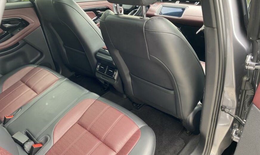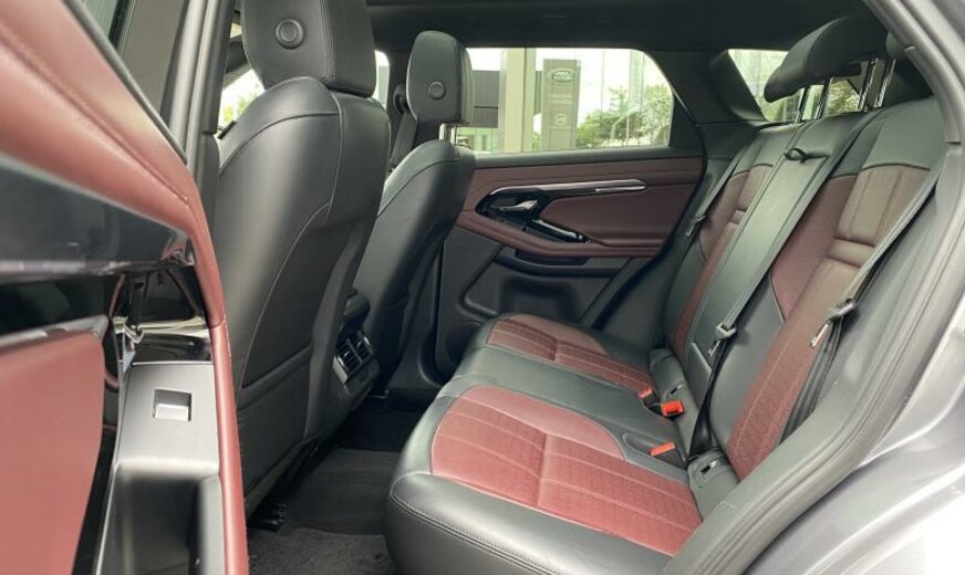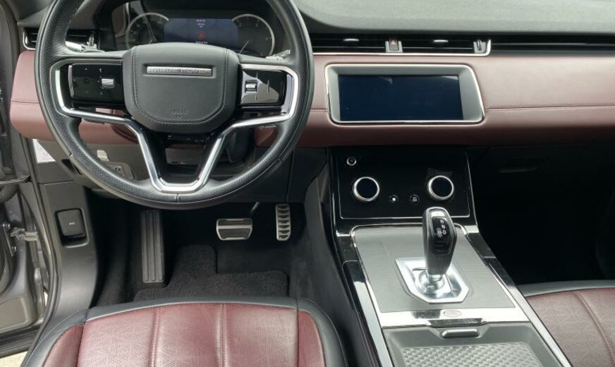 CO2:173gr/km push button start, sound system, android auto™ subject to availability , pivi pro connected , traffic sign recognition and adaptive speed limiter, double locking, morzine headlining, secure tracker 12-month subscrlption , power socket pack 1, gradated linear dark aluminium trim finisher, tow prep/bike carrier euro, rear animated directional indicators, 2l aj21 d4m, connected navigation data, wireless charger with booster - 5 freq, rear centre armrest, 3d surround camera, starter system - fead integrated, esim, wade sensing, tyre pressure monitoring system tpms , mhev2, cruise control and speed limiter, ebony headlining, s/b - elr/plp lhd pretensioner, steering column lock, 40:20:40 split fold rear seat, centre console storage surround finishers in colour code, low copper brake pads, 40:20:40 folding rear seats with centre armrest, wi-fi, rear centre headrest, manually adjustable steering column, remote, all terrain progress control atpc , locking wheel nuts, manual headlight levelling, emergency braking, tyre recommended plate - non english, driver condition monitor, seat cushion power tilt, two-zone climate control, seat cushion power height, front and rear parking aid, bbus with tilt sensor, r-dynamic exterior pack, front seat lumbar - 4 way, pivi - diamond, tyre repair system, seat cushion power fore/aft, non-smoker\\\'s pack, satin chrome gearshift paddles, online pack with data plan, navigation pro, sos assistance call, forward facing camera, weather protection seal, r-dynamic model, bodyside cladding - narvik black, i/p insert - dark chrome, chrome treadplates, seat squab power recline, passive suspension, deployable bonnet/scuttle abag, styling - r-dynamic, analogue dials with central tft display, lane keep assist, door lock shields, gloss black door mirror caps, auto-dimming interior rear view mirror, rain sensing windscreen wipers, voice control, led headlights, 9-speed automatic transmission, efficient driveline, heated, electric, power fold door mirrors with approach lights and auto-dimming driver side, bright metal pedals, powerpack 12, 18\\\" wheel, digital audio broadcast dab radio, intrusion sensor, apple carplay® subject to availability , leather gearshift, daytime running lights drl , front headrest manual height, ebony morzine headlining, r-dynamic s, connected navigation pro, 10\\\" touchscreen, terrain response 2, range rover evoque, bluetooth® connectivity, sliding panoramic roof, r-dynamic s 163ps auto, privacy glass, 21my, 18\\\" style 5074, gloss black, wireless device charging with phone signal booster, powered tailgate / boot lid, production build for retailer ordering, black contrast roof, cold climate pack, interior enviroment pack 95, diamond quilted windsor leather seats, door armrest - leather, bmpr lwr vlc - body colour/narvik black, gloss black grille, ip - slush/windsor leather, towing eye cover - narvik black, door trim panel-tpo/windsor leather, deep garnet/ebony, driver seat memory, gloss black bonnet louvres, heated front seats, ip contrast - deep garnet/ebony, r dynamic exterior + black pack 11, 14-way heated electric seats with driver memory and 2-way manual headrests, front seat bolster - power, gloss black side vents, eiger grey, extended leather upgrade, deep garnet/ebony perforated windsor leather seats with deep garnet/ebony interior, 14-way heated electric driver memory front seats with 2-way manual headrests, black exterior pack, premium cabin lighting, perforated full leather steering wheel, twin front cupholders with cover, front spring load -class f, rear spring load - class g, heated steering wheel, heated windscreen, heated washer jets