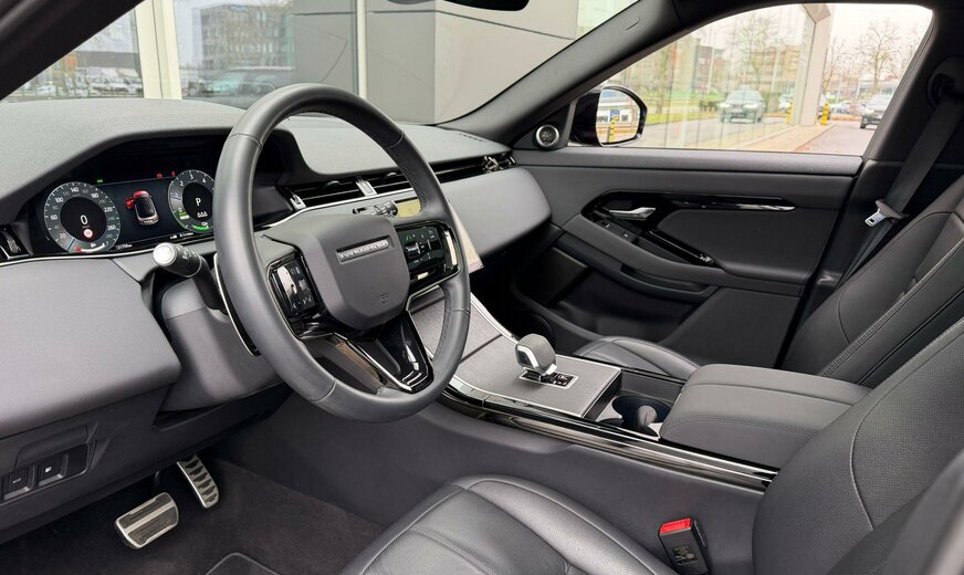 CO2:32gr/km 005cm, 005cn, secure tracker 12-month subscrlption , remote, external sound eng enhancemt, brake pads low copper, 021gz, charging cable-mode 3 var 2 , 021sa, two-zone climate control, 022ga, 022la, 025cw, voice control, 025fw, digital audio broadcast dab radio, meridian™ sound system, pivi diamond, navigation gsr-ii, wi-fi, sos assistance call, online pack with data plan, 025sf, knee protection, 026bk, s/b - elr/plp lhd pretensioner, wireless device charging, pivi pro connected , 026rd, passive suspension, electric rear axle drive, towbar prep/bike carrier euro, towing eye cover narvik black, tyre repair system, gloss black door mirror caps, 030ja, auto high beam assist ahba , heated, electric, power fold door mirrors with approach lights and auto-dimming driver side, auto-dimming interior rear view mirror, ebony headlining, driver seat memory, rear centre headrest, rear centre armrest, perforated grained leather seats, 40:20:40 split fold rear seat, 033lr, 033lv, 033rj, 033rq, 033va, 033xh, door armrest - pvc benecke, ebony / ebony, 035aa, euro/armen/kazakh 3yr conn. service pack, tyre config 1, speedometer kph, ip contrast - ebony/ebony, front driver display, dynamic exterior black pack 12, 039ia, starter system - fead integrated, 040zz, 043bc, electric cabin pre-conditioning, 046ac, 046da, chrome treadplates, steering column lock, front wheel steering, manually adjustable steering column, deployable bonnet/scuttle abag, bright metal pedals, filler neck phev, 053fa, power socket pack 2, powerpack 07, locking wheel nuts, 056aa, 056ah, 056bk, 056by, tyre pressure monitoring system tpms , 19\\\" wheel, 062zz, automatic headlight levelling, daytime running lights drl , 064bw, 064cp, gloss black grille, cabin lighting, led tail lights, led headlights with signature drl, adaptive cruise control, emergency braking, rear animated directional indicators, keyless entry, 066cz, weather protection seal, 068ac, powered tailgate / boot lid, 074qq, double locking, intrusion sensor, 076ez, satin chrome gearshift paddles, active transmission warming, 079fz, body-coloured roof, gloss black side vents, cladding/sill narvik black, bmpr lwr vlc body colour/narvik black, gloss black bonnet louvres, door trim panel tpo/pvc benecke, lane keep assist, traffic sign recognition and adaptive speed limiter, driver condition monitor, rear camera, blind spot assist, forward facing camera, rear traffic monitor, rear collision monitor, 11.4\\\" touchscreen, connected navigation pro, nav region 1 europe, 087zz, console lid pvc, morzine headlining, ip tpo/pvc benecke, non-smoker\\\'s pack, 095ja, double charge socket ac/dc type 2 combo, tyre recommended plate non english, 096va, door lock shields, petrol/electric hybrid, 116az, power output - 309ps, wireless device charging, front seat cushion power fore/aft, front seat cushion power height, front seat cushion drvr only pwr tilt, front seat squab power recline, 180ee, front headrest manual height, 180gg, 180hh, 180jj, front seat lumbar - 4 way, apple carplay® subject to availability , android auto™ subject to availability , connected navigation data, 183ha, esim, 184aa, ebony morzine headlining, 188kc, public charging cable, front and rear parking aid, 1.5 aj20 p3h phev 200cu, 1.5 aj20 p3h phev, 40:20:40 folding rear seats with centre armrest, range rover evoque, 12-way driver memory 10-way passenger elec frtseats, 2-way manual headrests rr centre armrest, 12-way driver and 10-way passenger electric driver memory front seats with 2-way manual headrests, 329aa, d8, dynamic se, 381aa, 382aa, styling - dynamic, l551 range rover evoque, k9999, 017cf, 017gz, 017tc, 028ha, 072zz, 074pu, 187ez, 281aa, 8-speed automatic transmission, grained leather seat facings - ebony, 24my, dynamic se 309ps auto, heated front seats, privacy glass, sliding panoramic roof, shadow grey ash veneer, production build for retailer ordering, black exterior pack, 19\\\" style 5136, gloss black, santorini black, front spring load class g, rear spring load class k