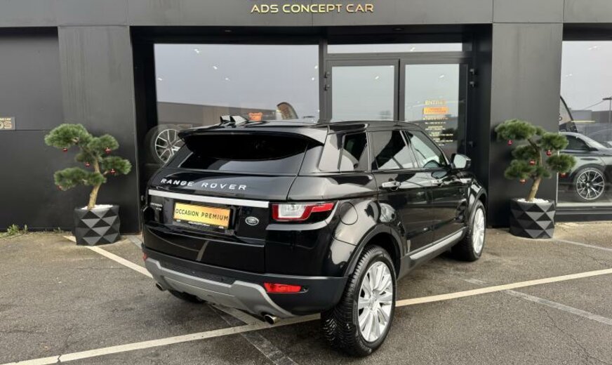 BIENVENUE CHEZ ADS CONCEPT CAR\r\n\r\nINFORMATIONS GÉNÉRALES\r\nMarque: Land RoverEvoque\r\nModèle: Range Rover Evoque\r\nType: HSE \r\nForme de carrosserie: SUV\r\nAnnée du modèle: 2017\r\n\r\nENVIRONNEMENT\r\nÉmission de CO2: 134 gr/Km\r\n\r\nGARANTIE \r\nADS CONCEPT CAR\r\n12 mois\r\n\r\nRETROUVER CE VÉHICULE SUR NOTRE PARC A FOETZ:\r\n4 Rue de l\\'Avenir L-3895 foetz \r\nLuxembourg\r\n\r\n\r\nNous proposons également des SOLUTIONS DE FINANCEMENT sur place, étudiées et adaptées à votre situation, afin de faciliter l\\'acquisition de votre futur voiture\r\n\r\nProfitez d’une estimation de reprise sur mesure, sans engagement, et réservez un essai personnalisé du véhicule d’occasion qui retient votre attention.\r\nNos conseillers se tiennent à votre disposition — en ligne, par téléphone ou en showroom — pour vous accompagner à chaque étape.\r\n\r\nLes équipements indiqués ont été recensés avec attention. Cependant, certains éléments peuvent varier ou ne pas apparaître dans cette descrlption.\r\nNous vous recommandons donc de vérifier les équipements qui comptent le plus pour vous avant de confirmer votre achat.\r\nCette présentation est fournie à titre informatif.\r\n\r\n\r\nLISTES DES OPTIONS :\r\n Aide au stationnement avant\r\n Aide au stationnement arrière\r\n Climatisation\r\n Climatisation automatique\r\n Alarme\r\n Caméra de recul\r\n Contrôle de traction\r\n direction assistée\r\n Jantes en alliage\r\n Ordinateur de bord\r\n Phares antibrouillards\r\n Régulateur de vitesse\r\n Rétroviseurs électriques\r\n Sièges AV à réglage électrique\r\n Sièges avant chauffants\r\n Système de navigation GPS \r\n Téléphone intégré\r\n Toit panoramique\r\n Contrôle de stabilité\r\n Senseurs pluie\r\n Senseurs lumière\r\n Bluetooth\r\n Phares LED\r\n Commande vocale\r\n Park Assist\r\n Hayon arrière électrique\r\n Radio numérique\r\n Volant multifonctions\r\n Assistant de démarrage en côte\r\n USB\r\n Alerte de franchissement involontaire de lignes\r\n Phares de jour LED\r\n Accoudoir\r\n Phares de jour\r\n Start/Stop automatique\r\n Apple CarPlay\r\n Siège à réglage lombaire\r\n Volant en cuir\r\n Android Auto\r\n Isofix\r\n Dispositif mains libres\r\n Système d\\'appel d\\'urgence\r\n Système de contrôle de la pression pneus\r\n Verrouillage centralisé\r\n Airbag conducteur\r\n Frein de stationnement électronique\r\n Airbag passager\r\n Vitres teintées\r\n SOUS RÉSERVE D\\'ERREURS \r\n\r\nN\\'hésitez pas à nous contacter pour toute question sur nos véhicules :\r\n\r\n+352 661 61 61 60 \r\n+352 621 484 350\r\n www.adsconceptcar.lu\r\n\r\nADS CONCEPT CAR