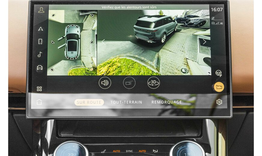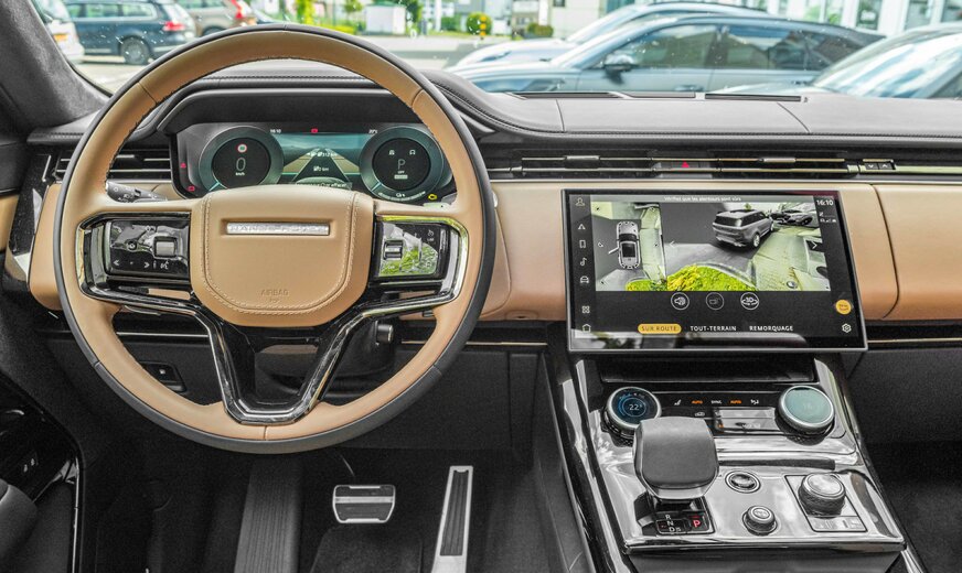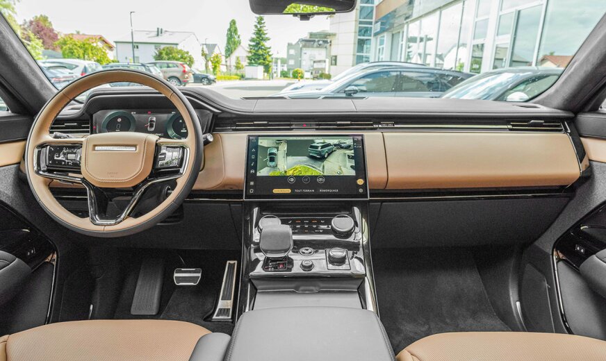 Adaptive cruise control (ACC) with stop & go function and steering assistant, perimetric alarm system, all-wheel steering, audio system: Meridian sound system (800 watts, 19 speakers, subwoofer), electrically adjustable, heated and foldable exterior mirrors with automatic dimming and ambient lighting, exterior mirrors with memory function, indicators with running light, Bluetooth interface, brake callipers painted black, roof in contrasting color, roof liner SV Bespoke Build premium velour in ebony, digital LED headlights with LED signature and image projectors, Dynamic Response System Pro (active chassis stabilization), parking aid front and rear, illuminated door sills with lettering, electric motor 160 kW (hybrid drive), electronic. Limited-slip differential (rear axle), driving assistance system: Adaptive chassis control (Adaptive Dynamics), driving assistance system: Attention assistant, extended (DCR), driving assistance system: Autonomous emergency braking assistant, driving assistance system: Rear impact avoidance including blind spot warning system, driving assistance system: Rear collision warning system (reversing assistant / cross traffic assistant), driving assistance system: Rear collision warning system, driving assistance system: Parking assistant, driving assistance system: Lane keeping assistant (Lane Departure Warning), driving assistance system: Depth measurement when driving through water (Wade Sensing), driving assistance system: Blind spot assistant with lane keeping assistant, driving assistance system: Traffic sign recognition with adaptive speed limiter system, luggage compartment partition (net), seat belt locks, illuminated, head-up display, tailgate / lid electric. operated (open + close), Hybrid 375 kW (engine 3.0 liter - 294 kW), InControl Remote Premium (online services / apps), infotainment system: Pivi Pro, interior: decorative inlays Natural Black, interior lighting Premium, interior mirror, digital (Smart View Mirror), proactive occupant protection system, instrument display TFT color display (13.7 inches), body: 5-door, 4-zone automatic climate control, charging cable with type 2 plug (mode 3), loading sill protection (aluminum), leather package, extended equipment, SV Bespoke Build, steering wheel (leather) with multifunction with bezel in Moonlight, steering wheel with shift paddles / buttons (matt chrome), steering column (steering wheel) electr. adjustable, alloy wheels, air quality sensor, mobile phone interface with wireless charging function, petrol particle filter (GPF), panoramic electric sunroof, digital radio reception (DAB+), wheelbase 2997 mm, tire pressure monitoring system, leather backs of front seats, low emissions according to Euro 6d emissions standard, hardened side windows, service system: Amazon Alexa, seat cover / upholstery: perforated semi-aniline leather (ebony), front seats electrically adjustable (22-way, with memory and massage function), air-conditioned and heated, wireless smartphone interface (Apple CarPlay & Android Auto), automatic soft-close for doors, left sun visor with mirror, two-part (illuminated), sports pedals, start / stop system, surround camera system, premium carpet floor mats, Terrain Response System 2, touchscreen color display (13.1 inches), plain paint, two-stage transfer case (reduction gear)