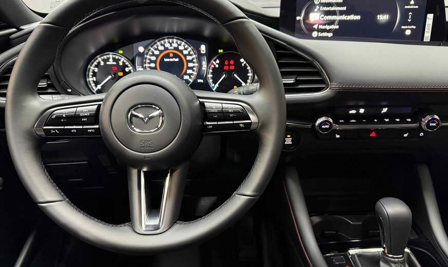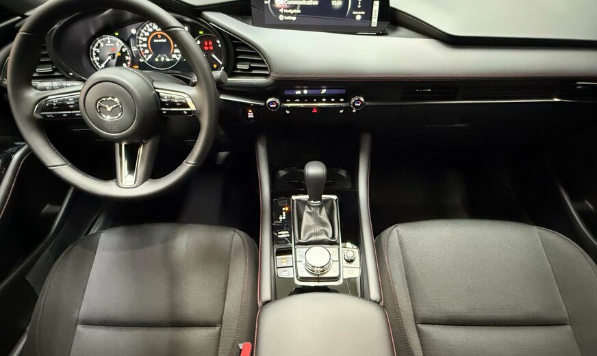 Mazda 3 !!! NOTRE STOCK COMPLET SUR https://deltgen.lu/deltgen-cars !!! VOITURE DISPONIBLE ET LIVRABLE DE SUITE Prix catalogue: 32624⬠(Remise du mois 3000⬠= Prix de vente 29624â¬) valable jusqu'au 31/12/2025 Financement à partir de 2.99% Mazda 3 Finition : Homura EXTÃRIEUR - Phares avant LED avec fonction antibrouillard intégrée et lave-phares - Feux diurnes halogènes - Phares arrière LED - Rétroviseurs extérieurs en 'Piano Black' réglables électriquement, chauffants et rabattables automatiquement - Rétroviseur extérieur côté conducteur avec fonction anti-éblouissement automatique - Vitres surteintées à l'arrière - Aide au stationnement arrière - Aide au stationnement avant - Caméra de recul - Capteur de pénombre - Capteur de pluie - Verrouillage centralisé avec clef intelligente - Jantes en alliage 18 'Black' avec pneus 215/45R18 - Poignées de portes couleur de carrosserie - Boucliers avant et arrière couleur de carrosserie - Partie inférieure du bouclier avant noire - Partie inférieure du bouclier arrière noire - Calandre avant en 'Piano Black' avec insert en 'Dark metallic' - Becquet arrière - Vitres latérales avec insert inférieur chromé - Montants de portes extérieures en 'Piano Black' - Essuie-glaces avec buse de lave-glace intégrée - Fonction Coming/Leaving home INTÃRIEUR - Climatisation automatique bi-zone - Ordinateur de bord avec écran TFT 7 en couleur - Affichage tête haute en couleur avec projection sur pare-brise (ADD) - Vitres électriques avant et arrière - Rétroviseur intérieur avec fonction anti-éblouissement automatique - Volant réglable en hauteur et en profondeur - Volant et pommeau du levier de vitesses gainés de cuir - Commandes audio intégrées au volant - Frein à main électrique (EPB) - Siège conducteur réglable manuellement (8 voies) - Siège passager réglable manuellement (6 voies) - Sièges avant chauffants - Banquette arrière rabattable 60/40 - Revêtement de la console centrale et de l'accoudoir central en similicuir noir avec surpiqûres rouges - Revêtement de l'accoudoir des panneaux de portes et des panneaux de portes en similicuir noir avec surpiqûres rouges - Insert du tableau de bord en similicuir noir avec surpiqûres rouges - Revêtement des sièges en tissu noir avec surpiqûres rouges - Ciel de toit noir - Accoudoir centrale avant avec espace de rangement fermé - Lampes de lecture avant et arrière LED - Boîtes à gants éclairée - Sélection du mode de conduite - Couvre-bagages CONNECTIVITà ET INFODIVERTISSEMENT - HMI Commander et Mazda Connect avec écran couleur 10,25 - Bluetooth® - Apple Carplay® et Android Auto®** sans fil - Système de navigation (7 ans de mise à jour gratuite des cartes) - Services Mazda connectés - Prises USB-C (x2) et prise 12 V - Chargeur sans fil Qi SÃCURITà - Régulateur de vitesse adaptatif (MRCC) - Assistance intelligente à la vitesse (ISA) - Assistance au freinage en milieu urbain (SCBS) - Assistance intelligente au freinage (SBS) - Système de suivi de voie actif (LKA) - Système de surveillance d'angles morts (BSM) - Système de surveillance d'angles morts en marche arrière (RCTA) - Système d'alerte anti-fatigue pour le conducteur (DAA) - Système de reconnaissance des panneaux de circulation (TSR) - Gestion des feux de route (HBC) - ABS, EBD (répartiteur électronique de la force de freinage) et EBA (assistance au freinage d'urgence) - DSC (contrôle dynamique de stabilité) avec TCS (système antipatinage) - Deux airbags frontaux, airbags latéraux à l'avant, airbags rideaux avant et arrière et airbag genou côté conducteur - Système de contrôle individuel de la pression des pneus (TPMS-i) - Aide au démarrage en côte (HLA) avec fonction auto-hold - Verrouillage automatique des portes - Système d'alarme - Système d'appel d'urgence e-Call Garantie usine 6 ans ou 150.000km Assistance Mazda Frais de mise en route (275â¬) et de transport (599â¬) non inclus dans le prix affiché Pour plus de renseignement ou un essai n'hésitez pas à contacter notre service vente: PAULO DA SILVA Tél.: +352 81 82 04-24 WhatsApp / Facetime: +352 621 818 215 sales@deltgen.lu Garage Deltgen à Ettelbrück Votre partenaire au Luxembourg pour Mazda Occasions garanties toutes marques *sauf erreurs ou omissions