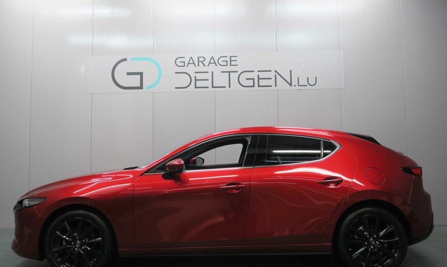 Mazda 3 !!! NOTRE STOCK COMPLET SUR https://deltgen.lu/deltgen-cars !!! !!!CONDITIONS FESTIVAL PROLONGEES!!! VOITURE DISPONIBLE ET LIVRABLE DE SUITE Prix catalogue: 30980⬠(Remise du mois 3000⬠= Prix de vente 27980â¬) valable jusqu'au 28/02/2026 Financement à partir de 2.99% Mazda 3 Finition : Homura EXTÃRIEUR - Phares avant LED avec fonction antibrouillard intégrée et lave-phares - Feux diurnes halogènes - Phares arrière LED - Rétroviseurs extérieurs en 'Piano Black' réglables électriquement, chauffants et rabattables automatiquement - Rétroviseur extérieur côté conducteur avec fonction anti-éblouissement automatique - Vitres surteintées à l'arrière - Aide au stationnement arrière - Aide au stationnement avant - Caméra de recul - Capteur de pénombre - Capteur de pluie - Verrouillage centralisé avec clef intelligente - Jantes en alliage 18 'Black' avec pneus 215/45R18 - Poignées de portes couleur de carrosserie - Boucliers avant et arrière couleur de carrosserie - Partie inférieure du bouclier avant noire - Partie inférieure du bouclier arrière noire - Calandre avant en 'Piano Black' avec insert en 'Dark metallic' - Becquet arrière - Vitres latérales avec insert inférieur chromé - Montants de portes extérieures en 'Piano Black' - Essuie-glaces avec buse de lave-glace intégrée - Fonction Coming/Leaving home INTÃRIEUR - Climatisation automatique bi-zone - Ordinateur de bord avec écran TFT 7 en couleur - Affichage tête haute en couleur avec projection sur pare-brise (ADD) - Vitres électriques avant et arrière - Rétroviseur intérieur avec fonction anti-éblouissement automatique - Volant réglable en hauteur et en profondeur - Volant et pommeau du levier de vitesses gainés de cuir - Commandes audio intégrées au volant - Frein à main électrique (EPB) - Siège conducteur réglable manuellement (8 voies) - Siège passager réglable manuellement (6 voies) - Sièges avant chauffants - Banquette arrière rabattable 60/40 - Revêtement de la console centrale et de l'accoudoir central en similicuir noir avec surpiqûres rouges - Revêtement de l'accoudoir des panneaux de portes et des panneaux de portes en similicuir noir avec surpiqûres rouges - Insert du tableau de bord en similicuir noir avec surpiqûres rouges - Revêtement des sièges en tissu noir avec surpiqûres rouges - Ciel de toit noir - Accoudoir centrale avant avec espace de rangement fermé - Lampes de lecture avant et arrière LED - Boîtes à gants éclairée - Sélection du mode de conduite - Couvre-bagages CONNECTIVITà ET INFODIVERTISSEMENT - HMI Commander et Mazda Connect avec écran couleur 10,25 - Bluetooth® - Apple Carplay® et Android Auto®** sans fil - Système de navigation (7 ans de mise à jour gratuite des cartes) - Services Mazda connectés - Prises USB-C (x2) et prise 12 V - Chargeur sans fil Qi SÃCURITà - Régulateur de vitesse adaptatif (MRCC) - Assistance intelligente à la vitesse (ISA) - Assistance au freinage en milieu urbain (SCBS) - Assistance intelligente au freinage (SBS) - Système de suivi de voie actif (LKA) - Système de surveillance d'angles morts (BSM) - Système de surveillance d'angles morts en marche arrière (RCTA) - Système d'alerte anti-fatigue pour le conducteur (DAA) - Système de reconnaissance des panneaux de circulation (TSR) - Gestion des feux de route (HBC) - ABS, EBD (répartiteur électronique de la force de freinage) et EBA (assistance au freinage d'urgence) - DSC (contrôle dynamique de stabilité) avec TCS (système antipatinage) - Deux airbags frontaux, airbags latéraux à l'avant, airbags rideaux avant et arrière et airbag genou côté conducteur - Système de contrôle individuel de la pression des pneus (TPMS-i) - Aide au démarrage en côte (HLA) avec fonction auto-hold - Verrouillage automatique des portes - Système d'alarme - Système d'appel d'urgence e-Call Garantie usine 6 ans ou 150.000km Assistance Mazda Frais de mise en route (275â¬) et de transport (599â¬) non inclus dans le prix affiché Pour plus de renseignement ou un essai n'hésitez pas à contacter notre service vente: PAULO DA SILVA Tél.: +352 81 82 04-24 WhatsApp / Facetime: +352 621 818 215 sales@deltgen.lu Garage Deltgen à Ettelbrück Votre partenaire au Luxembourg pour Mazda Occasions garanties toutes marques *sauf erreurs ou omissions