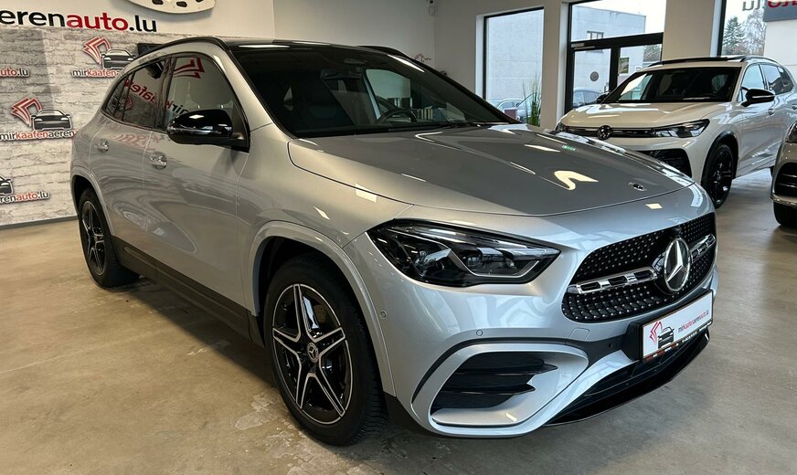 Mercedes-Benz GLA 200 Sonderausstattung: Aktiver Abstands-Assistent Distronic, Ausstattungs-Paket: Premium Plus, Außenspiegel mit Umfeldleuchte und Projektionsfunktion, Einstiegschienen (Edelstahl) beleuchtet, Fahrassistenz-System: Verkehrs-Informations-System Live Traffic, Fahrassistenz-System: Verkehrszeichenerkennung, Innenausstattung: Zierteile Aluminium Längsschliff, Navigationssystem: Festplattennavigation, Night-Paket, Sitz vorn links elektr. verstellbar (mit Memory) Weitere Ausstattung: Airbag Beifahrerseite abschaltbar, Airbag Fahrer-/Beifahrerseite, Außenspiegel elektr. verstell- und heizbar, beide, Beckenairbag vorn (Pelvisbag), Brillenfach im Dachhimmel integriert, DAB-Tuner (Radioempfang digital), Design- und Ausstattungslinie AMG Line, Fahrassistenz-System: Agility Select / Dynamic Select (Fahrmodusschalter), Fahrassistenz-System: aktiver Bremsassistent, Fahrassistenz-System: aktiver Spurhalteassistent, Fahrassistenz-System: Geschwindigkeitslimit-Assistent, Fahrzeug Setup (Onlinedienste / Apps), Fahrzeug-Monitoring (Fahrzeugortungssystem), Fensterheber elektrisch vorn + hinten, Getriebe 8-Gang - Doppelkupplungsgetriebe DCT, Karosserie: 5-türig, Keyless Go Startanlage, Knieairbag Fahrerseite, Kommunikationsmodul (LTE) Vorbereitung Mercedes me connect, Kopf-Airbag-System (Windowbag), Lenkrad (Sport) mit Multifunktion, Licht- und Sicht-Paket, Mercedes-Benz Notrufsystem, Modellpflege mit Code, Motor 2,0 Ltr. - 110 kW CDI KAT, Multimediasystem MBUX (Digitales Multimedia-System), Radstand 2729 mm, Reifendruck-Kontrollsystem, Rücksitzbank geteilt/klappbar (40:20:40), Schadstoffarm nach Abgasnorm Euro 6e, Seitenairbag (Sidebag) vorn, Sprachbediensystem Erweiterte Funktionen (MBUX), Start/Stop-Anlage, Steckdose (12V-Anschluß), Touchpad (Mittelkonsole), Unterfahrschutz vorn und hinten (silber), USB-Anschluss im Fond, USB-Anschlüsse