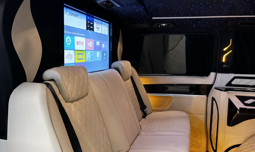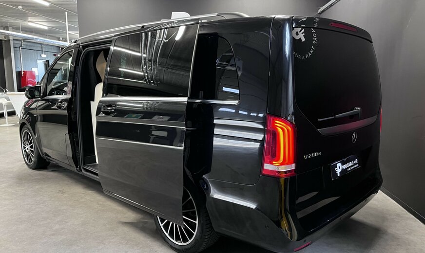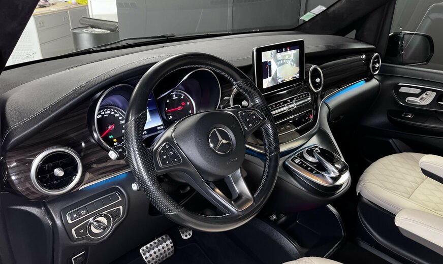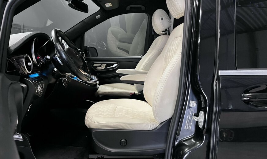 Mercedes-Benz V 250 Filet de rangement sur le dossier du siège avant gauche, système de navigation audio : COMAND Online, ciel de toit / revêtement intérieur en tissu noir, pack design intérieur, pack d'aide à la conduite, système d'aide à la conduite : assistant de stationnement actif, tapis de sol en velours, réservoir d'urée ( AdBlue) : 25 litres, équipement intérieur : éléments décoratifs en aspect bois ébène, climatisation automatique arrière (Tempmatik), climatisation automatique confort Thermotronic, réservoir de carburant : agrandi, séparateur de compartiment de chargement, jantes LM 8x19 (16 rayons), peinture métallisée, roue de secours avec cric, porte coulissante électrique à gauche, porte coulissante électrique à droite, places dans la cabine conducteur : siège conducteur électrique. réglable (avec mémoire), sièges dans la cabine conducteur : siège conducteur chauffant, sièges dans la cabine conducteur : siège conducteur avec support lombaire, pack rétroviseurs, châssis sport, pack sport extérieur, vitrage arrière obscurci / verre noir