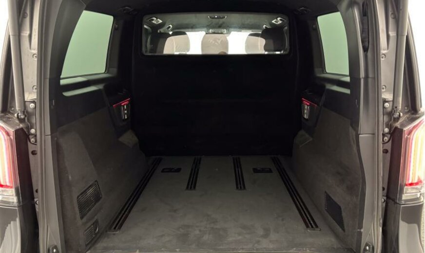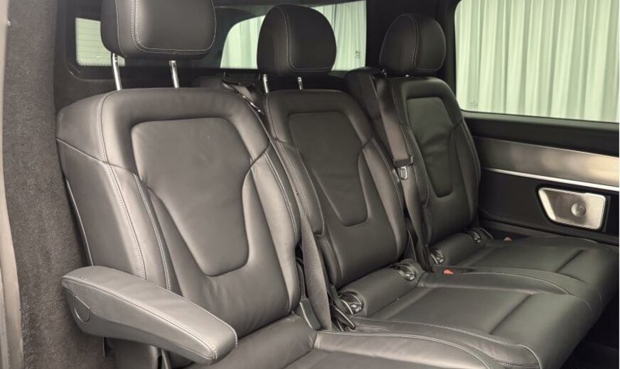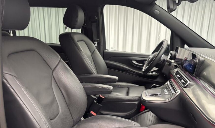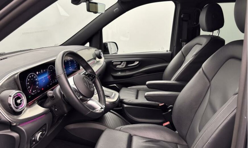 502 Digital extra: Updates for intelligent speed limit assist\r\n513L Belgium\r\n553 Trailer Manoeuvring Assist\r\n7831 Graphite gray metallic paint dark\r\n805 YoM X4/1\r\nA50 Front axle with increased load capacity\r\nB25 Electric parking brake\r\nBA3 Active Brake Assist System\r\nBB6 Brake booster failure compensation\r\nBB7 CO?-optimized brake system\r\nBH1 Hold function\r\nBS1 Brake callipers with Mercedes-Benz lettering\r\nC1L AMG front bumper with trim element in black\r\nC6L Multifunction steering wheel\r\nC74 Illuminated Mercedes-Benz lettering on door sill\r\nCA3 Active Steering Assist\r\nCA4 AIRMATIC\r\nCK8 Steering wheel heater\r\nCL1 Height and rake adjustable steering wheel\r\nCL3 Leather steering wheel\r\nCM2 Bumpers and detachable parts painted in vehicle colour\r\nCN1 Exterior rocker panel\r\nCU4 Aerodynamics package\r\nD12 Roof railing / luggage carrier\r\nE07 Hill-Start Assist\r\nE1D Digital radio DAB \r\nE1E Navigation\r\nE1T Touchpad\r\nE4S Smartphone Integration package\r\nE65 Burmester® surround sound system\r\nE7H MBUX multimedia system High\r\nED4 AGM battery 12 V 92 Ah\r\nEI0 Wireless charging system for mobile devices\r\nES2 Trunk/cargo area 12 V socket\r\nES3 12 V sockets for rear passenger compartment\r\nET4 Active Distance Assist DISTRONIC\r\nEW6 Pre-installation for Remote Services Plus\r\nEY2 Pre-installation for Live Traffic Information\r\nEY5 Mercedes-Benz emergency call system\r\nEY6 Breakdown management\r\nF2W Winter package\r\nF3S Exterior mirrors painted black\r\nF3Z Convenience closing\r\nF48 Heated windscreen washer system\r\nF65 Automatically folding outside mirrors\r\nF66 Lockable glove compartment\r\nF69 Electrically adjustable heated mirrors with turn signals\r\nF84 Digital rear-view mirror\r\nFB2 Exclusive trim elements\r\nFB4 AMG spoiler lip on boot lid\r\nFG0 Centre console with sliding cover\r\nFG9 Cup holders in rear armrests\r\nFH6 Dashboard in leather look with stitching\r\nFK5 Beltline trim strip, black anodised\r\nFK6 Radiator grille with LED strip\r\nFLK Luxury MPV\r\nFP3 Mirror package\r\nFS5 Illuminated vanity mirrors\r\nG43 9G-TRONIC automatic transmission\r\nH00 Hot/cool air duct to passenger compartment\r\nH15 Seat heater, front passenger\r\nH16 Seat heater, driver\r\nH20 Heat-insulating glass all round\r\nHH4 THERMOTRONIC automatic climate control\r\nHX1 Refrigerant R-1234yf\r\nHZ0 Electrical auxiliary heating\r\nHZ7 TEMPMATIC rear air conditioning\r\nIB6 Model series C447 Vito/V-Class\r\nIG5 Basic specification\r\nIH1 Headunit Europe/CIS\r\nIK0 Complete vehicle\r\nIK3 Luxury multipurpose vehicle\r\nIL2 Export code\r\nIL4 EU/EFTA region\r\nIL5 Left-hand drive\r\nIL6 Metallic paint\r\nIN3 Wheelbase 3430 mm, long overhang\r\nJ55 Seat belt warning system, front passenger\r\nJA7 Blind Spot Assist\r\nJA9 Traffic Sign Assist\r\nJB4 Active Lane Keeping Assist\r\nJB6 Parking package with 360° camera\r\nJF2 Energizing comfort control\r\nJH0 Display package\r\nJH3 Communication module LTE \r\nJM2 Extended automatic restart on freeways\r\nJM3 Route-based speed adaptation\r\nJM4 Active Speed Limit Assist\r\nJP1 PRE-SAFE® system\r\nJS3 Driving Assistance package\r\nJW8 Attention Assist\r\nJX2 Maintenance interval 40,000 km\r\nK51 Incorrect fuelling protection system\r\nKB5 Main fuel tank 70 litres\r\nKP7 SCR exhaust gas treatment, Generation 4\r\nL45 MULTIBEAM LED headlights\r\nLA2 Headlamp Assist\r\nLC4 Comfort overhead control panel\r\nLC5 Ambient lighting in exterior mirrors\r\nLC6 Rear passenger reading lights\r\nLC7 Front footwell illumination\r\nLC8 Ambient lighting, liftgate\r\nLE1 Adaptive brake lights\r\nLE3 64-color ambient lighting\r\nLE6 Rear passenger compartment night lighting\r\nLG4 LED tail lights\r\nLP4 Brand logo projection\r\nLX5 Europe\r\nM3E Electric radiator fan, stage 5\r\nM5O Engine output 174 kW 237 PS \r\nM60 Alternator 14 V / 250 A\r\nM72 HVO-capable vehicle\r\nMG9 Generator management\r\nMJ8 ECO start/stop function\r\nMO5 Emissions Euro 6E RDE5\r\nMU8 Engine OM654 DE 20 LA\r\nMX0 BlueEFFICIENCY package\r\nP28 EASY-PACK electric sliding door/tailgate\r\nPS2 AMG Line\r\nPY0 AVANTGARDE Interior Package\r\nQ50 Trailer coupling, removable\r\nQA4 Trailer load 2500 kg\r\nR1V AMG light-alloy wheels 19\\\"\r\nR22 Wheel size group 2\r\nRF1 Continental tyres\r\nRK1 Tyres 245/45 R19\r\nRM4 Comfort tyres\r\nRM7 Summer tyres\r\nRR6 Spare wheel with jack\r\nRX8 Ronal wheels\r\nRY2 Tyre pressure monitoring system\r\nSA1 Driver seat cushion length adjustment\r\nSA2 Passenger seat cushion length adjustment\r\nSA3 Centre airbag\r\nSA6 Passenger airbag\r\nSC0 Omission of table/trim on seat backrest\r\nSE0 Active seat ventilation, driver\r\nSE1 Active seat ventilation, passenger\r\nSE4 Lumbar support, passenger\r\nSE5 Lumbar support, driver\r\nSF1 Electrically adjustable driver seat\r\nSF2 Electrically adjustable passenger seat\r\nSH1 Side airbag driver\r\nSH2 Side airbag passenger\r\nSH9 Window airbags front\r\nSK2 Seat occupancy recognition, driver\r\nSK5 Automatic passenger airbag deactivation\r\nSK6 Passive child recognition\r\nSW4 Omission of rear seats\r\nSZ7 Stowage net, driver seat\r\nSZ8 Stowage net, passenger seat\r\nT14 Active load compartment retainer\r\nT19 Sliding door left\r\nT55 Electric sliding door right\r\nT56 Electric sliding door left\r\nT70 Childproof locks\r\nT74 Entrance handle\r\nU73 Armrests in passenger compartment\r\nUR1 Seat rail system with quick-release\r\nUS4 3-passenger comfort bench seat\r\nV33 Carpet in rear\r\nV36 Roof panelling\r\nV44 Front interior carpet\r\nVD7 Black headlining\r\nVH1 Grab handles rear\r\nVL7 AMG floor mats\r\nVQ8 Exclusive equipment line\r\nVY7 Nappa leather black\r\nVZ0 Tie-down eyes for seat rails\r\nW16 Fixed window front left\r\nW17 Fixed window front right\r\nW29 Fixed window behind\r\nW64 Separately opening rear window\r\nW68 EASY-PACK tailgate\r\nW70 Tinted rear windows\r\nWH0 Plant control code\r\nWQ3 Sales control code\r\nX49 Dutch documentation\r\nX99 Mercedes-Benz 
