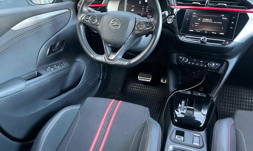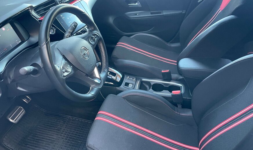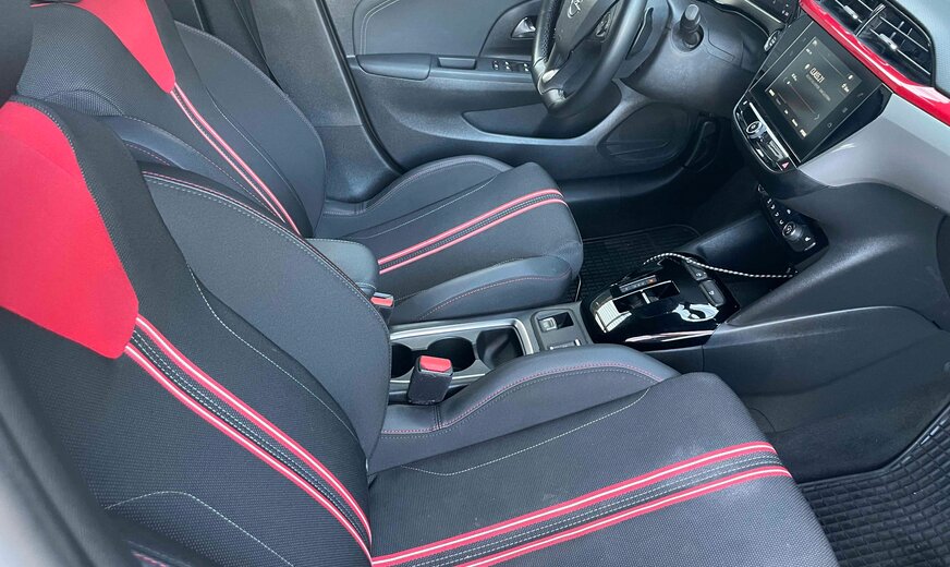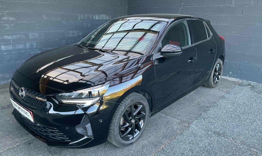 Opel Corsa OPEL CORSA 1.2L TURBO 130CV GS LINE BVA Kilométrage : 18 600 km D.P.M.C. : 09/2022 Puissance : 96 kW / 131 CV / 6 CV fiscaux Cylindrée : 1200 cm3 Boîte de vitesse : Automatique Carburant : Essence Couleur extérieure : Noir Finition intérieure : Cuir/Tissu noir Carrosserie : Citadine Nombre de portes : 3 Nombre de places : 5 Transmission : Avant Vitesses : 6 Cylindres : 3 Poids à vide : ... kg Conso. de carburant***: NDl/100 km (mixte) ND/100 km(urbain) ND/100 km(extra-urbain) CO2 émissioné***: … g/km (mixte) Equipements du véhicule •ABS/alarme/Anti-démarrage/Anti-patinage/ESP •Accoudoir central AV •Aide au stationnement AR/AV/360°/caméra •Airbags •Avertisseur angle mort/dépassement •Banquette AR rabattable 2/3 1/3 •Capteur pluie •Capteur luminosité •Climatisation •Direction assistée •Feux de jour à LED •ISOFIX •Frein de stationnement auto •Jantes alu 16’’ •Multimédia : Radio - Prise USB – Bluetooth audio - AppleCarPlay •Ordinateur de bord avec virtual cockpit •Phares LED •Régulateur de vitesse •Limiteur de vitesse •Rétro. ext. chauffants réglables et rabattables élect. •Rétro.int.J/N auto. •Sellerie cuir/tissu noir rouge •Sièges sport, chauffants •Système démarrage Key Less •Système reconnaissance panneaux signalisation •Systèmes sécurité intelligente : avertisseur collision / Avertisseur abandon de voie / Alerte franchissement involontaire de ligne •Système START/STOP •Système téléphone bluetooth •Tapis de sol caoutchouc •Verrouillage centralisé avec ouverture et fermeture KeyLess •Vitres électriques •Vitres sur-teintées •Volant cuir multifonctions à commandes vocales / palettes Description du véhicule 1ère main. Suivi et entretiens à jour. TVA récupérable pour les sociétés. Garantie