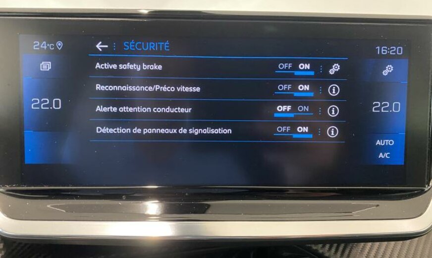 acoustique améliorée, liquide de refroidissement R1234yf, système audio Connect Nav numérique, unité de commande Telematik indépendante 3R, moniteur DGT10C HD, antenne intégrée et numérique, commande de la radio au volant, feux de jour à LED, allumage automatique des phares, Visio Park 1 avec caméra à 180°, siège passager réglable en hauteur, décoration tableau de bord Colores N3 P2, tableau de bord Quartz, ligne d\\\'équipement Salin, ceintures de sécurité av/ar avec avertisseur d\\\'oubli, filtre à carburant extérieur essence , norme anti-pollution Euro 6.3, condenseur de 20 dm² et de 12 mm d\\\'épaisseur, alternateur 150 A, batterie 60 Ah EFR, commande hydraulique de l\\\'embrayage, déflecteur d\\\'air double réglable pour radiateur, 1199 cc 1,2 L 96 KW HNS EB2ADTS, frein à main électrique, disques de frein av 283 mm, berceau av Alu, 6,5 J x 18 Alu Diamantee gris Bund, roue de secours temporaire, galerie de pavillon noir brillant, radiateur de 21 dm² et de 18 mm d\\\'épaisseur, bandeaux de protection latérale avec encarts en métal, grille de calandre avec moulures horizontales, embout échappement double chromé