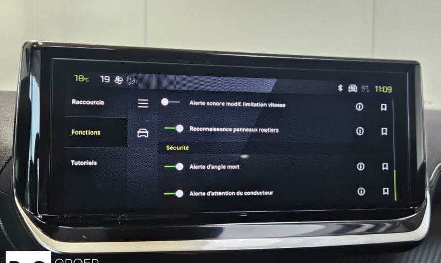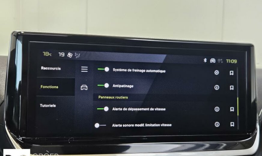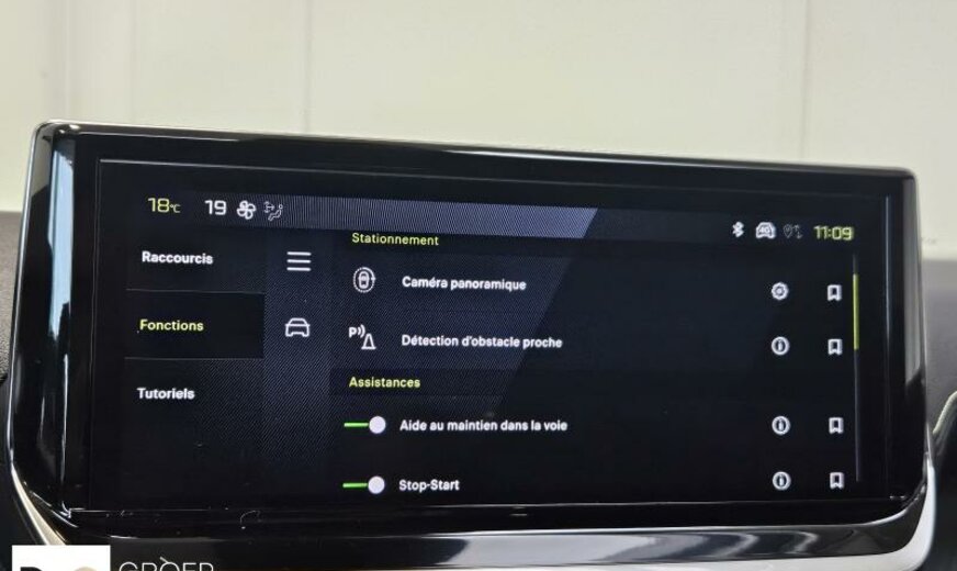 Facelift, pare-brise acoustique avec contour à 2 couches, acoustique améliorée, liquide de refroidissement R1234yf, système de chargement sans fil pour Smartphone, commande de la radio au volant, moniteur 10\\\" HD, réglage hauteur phares, feux de croisement/feux de route automatique, siège passager réglable en hauteur, éclairage périphérique, pédalier en Alu, décoration tableau de bord GT Line, console pavillon avec 3 LED, tableau de bord Quartz, ligne d\\\'équipement noir, ceintures de sécurité av/ar avec avertisseur d\\\'oubli, filtre à carburant extérieur essence , condenseur de 20 dm² et de 16 mm d\\\'épaisseur, déflecteur d\\\'air double réglable pour radiateur, 1199 cc 1,2 L 100 KW EB2LTDH2, frein à main électrique, suspension de type 2, disques de frein av 302 mm, berceau porteur av en acier, 6,5 J x 17 Alu Diamantee brillant noir, galerie de pavillon noir brillant, radiateur de 21 dm² et de 21 mm d\\\'épaisseur, bandeaux de protection latérale avec encarts en métal, enjoliveurs bas de caisse av inox, enjoliveurs vitres de porte noir brillant, grille de calandre Type 3, 3 couches nacrée