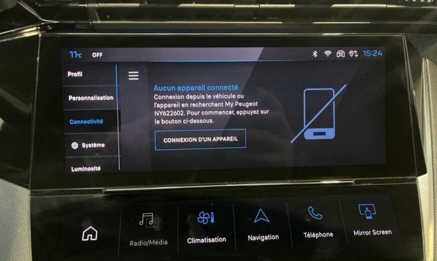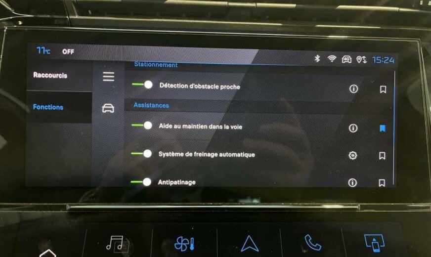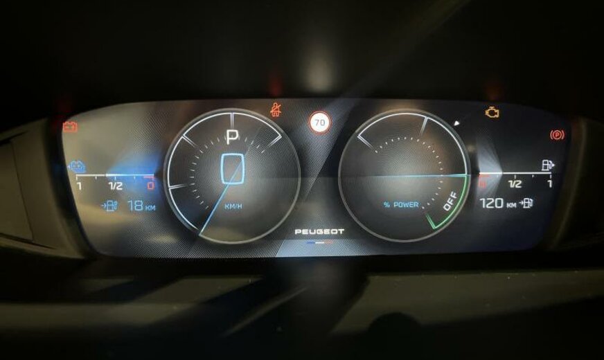avertisseur à deux tons, moulures de vitres noir brillant, câble de charge T2 pour connexion E/F, condenseur de 23,5 dm² et de 16 mm d\\\'épaisseur, Bi-tuner, 6 haut-parleurs, instruments digitaux, feux de jour LED, allumage automatique des phares, éclairage périphérique, équipement Allure, décorations intérieures en textile, Peugeot Connect Assistance, pares-soleil éclairés, sièges av Confort, 1598 cc 1,6 L 110 KW DGX EP6FADTXHPE / 132/3 KW Total , radiateur de 28 dm² et de 28 mm d\\\'épaisseur en aluminium, commande de vitesse au volant, suspension normale, colonne de direction réglable en profondeur, barre stabilisatrice av 30.000 Nm, disques de frein av 330 mm, disques de frein ar 290 mm, 7,5 J x 17 Alu \\\"Calgary\\\", ventilateur électrique 200 W, face avant avancée, chargeur de batterie 7 KW, batterie 70 Ah EFBC, 3 couches nacrée