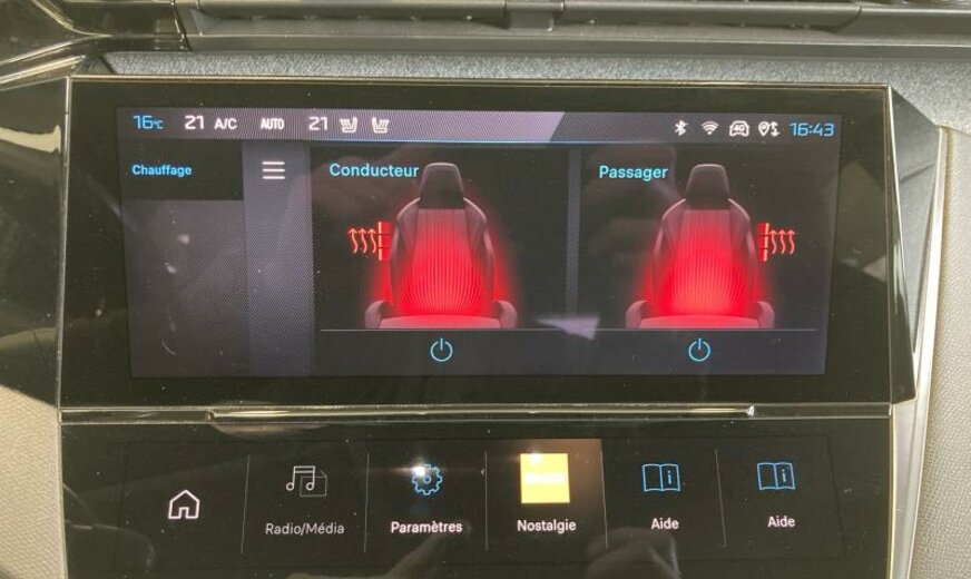 avertisseur à deux tons, moulures de vitres noir brillant, condenseur de 19,3 dm² et de 12 mm d\\\'épaisseur, Rear Cross Traffic Alert, Bi-tuner, 6 haut-parleurs, instruments digitaux, feux de jour LED, allumage automatique des phares, éclairage périphérique, équipement Allure, décorations intérieures en textile, Peugeot Connect Assistance, pares-soleil éclairés, sièges av Dynamic, 1199 cc 1,2 L 96 KW HNS EB2ADTS, radiateur de 28 dm² et de 18 mm d\\\'épaisseur \\\"F1\\\", suspension normale, colonne de direction réglable en profondeur, 7,5 J x 17 Alu \\\"Calgary\\\", alternateur 120 A, ventilateur électrique 95 W, batterie 70 Ah EFBC