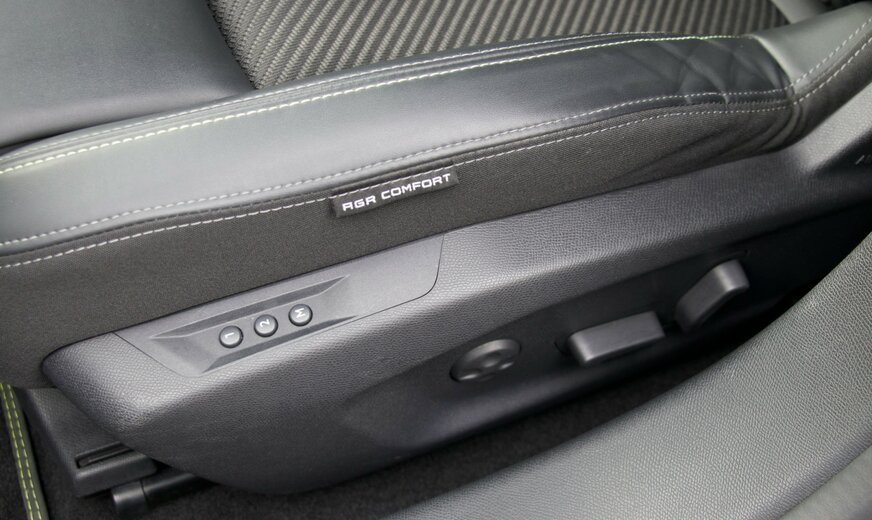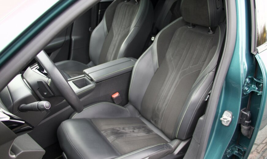 * intérieur : alcantara/similicuir/tissu avec surpiqûres décoratives en vert « Adamin »