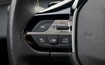 * volant multifonction en cuir avec inscription GT et palettes de changement de vitesse,
