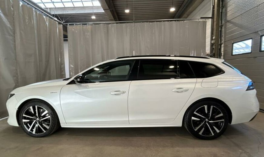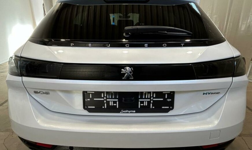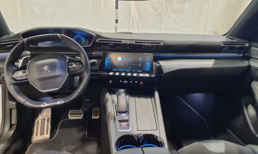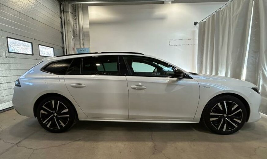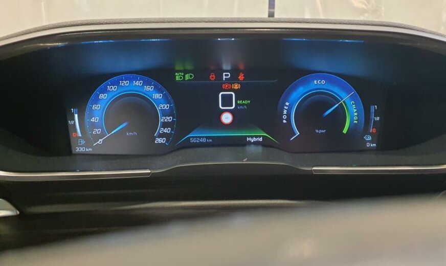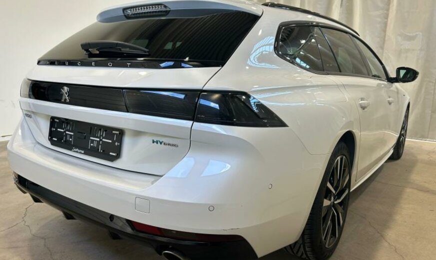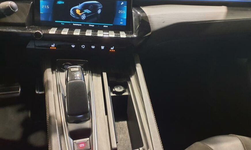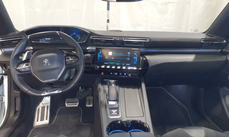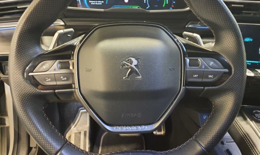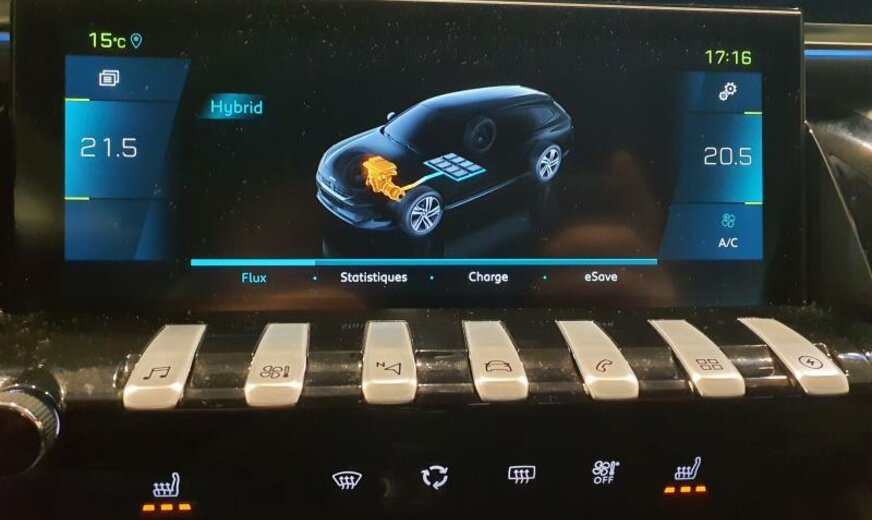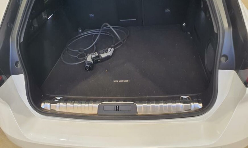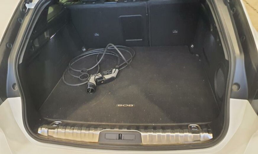 bras de suspension av acier asymétrique, batterie 60 Ah EFR, ventilateur électrique 200 W, chauffage avec régulation de ventilation, filtre pollen anti-allergène, condenseur 16 mm 23,5 dm2, pays froids, rétroviseurs extérieurs jour/nuit automatique, rétroviseurs noir brillant, hayon avec ouverture à l\\\'aide du pied, système audio Connect Nav numérique, amplificateur Equalizer Premium, système de chargement sans fil pour Smartphone, unité de commande Telematik indépendante 3S, moniteur DGT10C, fréquence radio Europe, allumage automatique des phares, réglage hauteur phares automatique, siège passager réglable électrique avec soutien de cuisses, accoudoir ar, fonctionnalité \\\"Mirror Screen\\\", interrupteur lève-vitres avec insert chromé, pédalier en Alu, décoration tableau de bord en bois massif, console centrale bois avec flancs en tapis, tapis de protection noir Lightcop, liserets orange, chargeur de batterie 7 KW, 1598 cc 1,6 L 132/133 KW DGY/DGZ EP6FADTXHP/165 KW total , PHEV Plugin Hybrid Electric Vehicle , disques de frein av 330 mm, suspension électronique, disques de frein ar 290 mm, barre stabilisatrice av 27.500 Nm, 8 J x 18 Alu Nitrox/Sperone, jantes Diamantee noires, galerie de pavillon, radiateur de 28 dm² et de 28 mm d\\\'épaisseur en aluminium, enjoliveurs bas de caisse av \\\"Peugeot\\\", enjoliveurs vitres de porte noir, embouts d\\\'échappement g/d ronds chromés, déflecteur d\\\'air double réglable pour radiateur, traverse av inférieure pour réparation améliorée, 3 couches nacrée