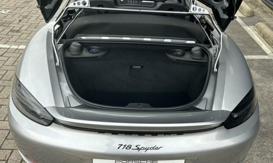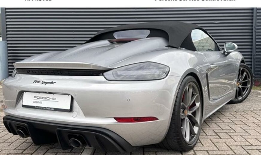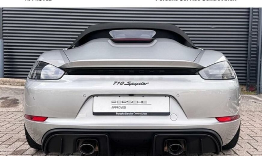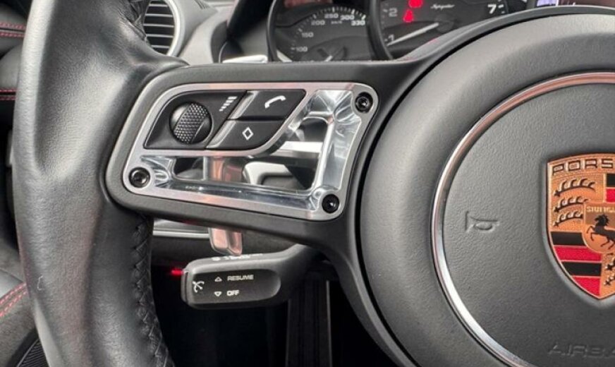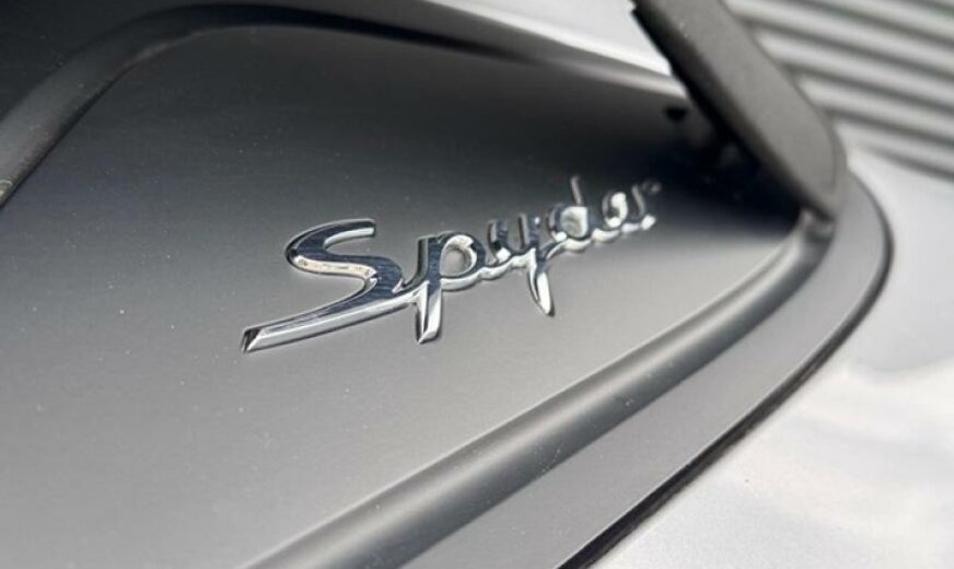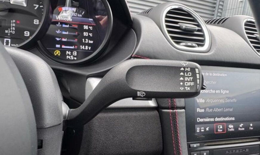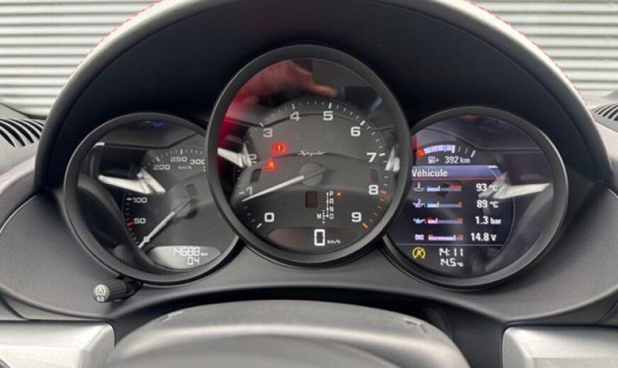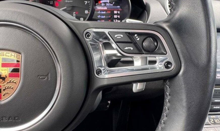 jantes en étoile peintes en platine mat, fréquence radio 434 MHz, écran enjoliveur accoudoir de porte peint, liquide de refroidissement R1234yf, pack fumeurs, pare-brise avec bande grise, feux ar foncés, système lave-phares, selle chauffante, module airbag cuir, enjoliveur du tableau de bord peint, rétroviseur d convexe, volant sport GT en cuir, cadrans du combiné instruments de couleur noire, échappement Sport, 3995 cc 4,0 L 309 KW, embouts d\\\'échappement sport noirs, garnissage sièges cuir/Alcantara, Active Suspension Management PASM , colonne de direction réglable mécanique avec ELV, régulation dynamique du moteur PADM , 8,5 J x 20 / 11 J x 20 Alu \\\"Spyder\\\", protections du système lave-phares peintes, protections de roues concaves avec blason en couleur, console centrale ar peinte, protection des piétons, pare-soleil en cuir, norme anti-pollution Euro 6 AP, Porsche Dynamic Light System Plus PDLS + , récepteur radio HD, Porsche Torque Vectoring PTV avec blocage mécanique du différentiel ar, pare-vent, radiateur central, pré-équipement Vehicle Tracking System, pédalier look sport