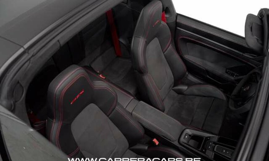 * Equipements : Pack GTS intérieur & exterieur, Pack intérieur en carbone mat, Seuils de porte en carbone, éclairés, Volant sport GT chauffant en Race-Tex, Cadrans de compteurs en Rouge Carmin, Sièges sport adaptatifs Plus, réglables électriquement sur 18 positions avec pack mémoire et chauffants, Bas de caisse Sport Design, Éclairage d’ambiance à LED avec logo Porsche, Lamelles d’entrée d’air du capot arrière peintes dans la couleur extérieure, Bande lumineuse arrière Exclusive Design, Système de levage hydraulique de l’essieu avant (SMART LIFT), Direction assistée Plus, Phares à LED avec technologie Matrix, Rétroviseurs intérieur et extérieurs à atténuation automatique avec capteur de pluie et electrique, Assistance au changement de voie (Lane Change Assist), ParkAssist avec Camera vue panoramique (Surround View), Assistance au maintien de voie (Lane Keep Assist) incluant l’indicateur de limitation de vitesse, Régulateur de vitesse adaptatif, Pack d’éclairage d’ambiance intérieur, Système audio Surround BOSE®, Protection complète PPF, Bac de coffre, Tapis de sol toutes saisons (noirs), Chargeur Porsche Charge-o-mat Pro, Housse d’intérieur, Climatisation Bi-Zones, GPS Navigation Plus & Virtual Cockpit & CarPlay, Multimédia Radio, AUX, USB, Bluetooth & Téléphone, Pack Chrono, Key-Less, Direction Assistée, etc..