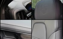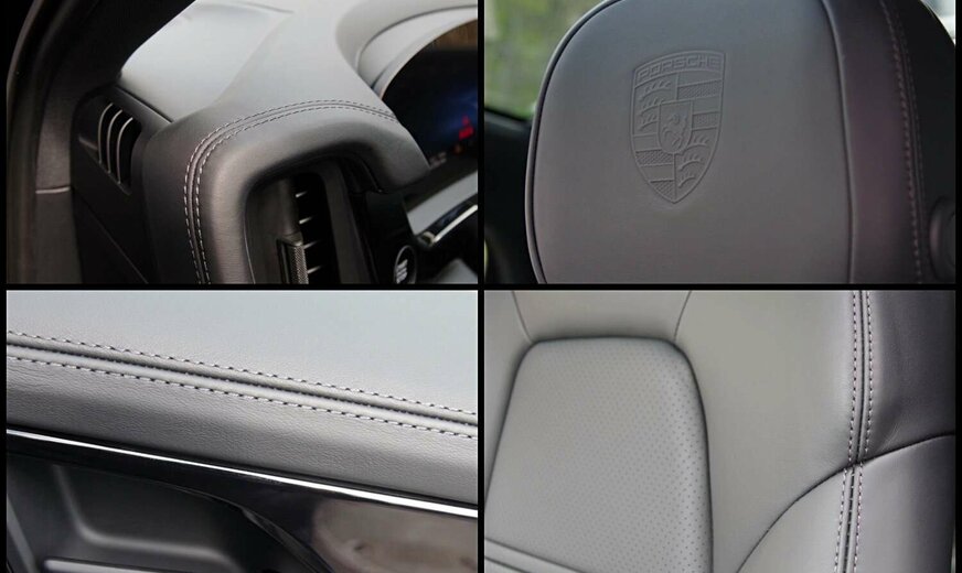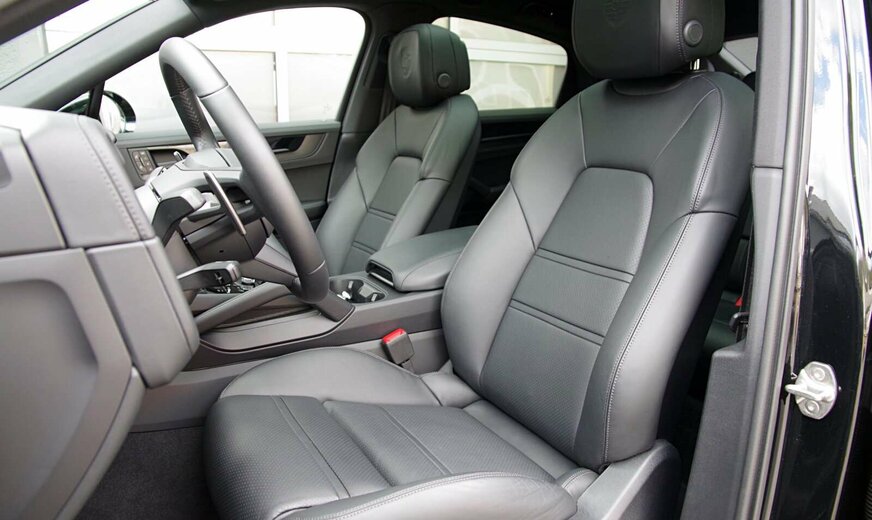 Polsterung: Volllederausstattung in Schwarz (Sitzmittelbahnen vorn und hinten, Sitzwangen vorn und hinten innen, Kopfstützenmittelbahnen und -seiten vorn und hinten, Armauflage und Griff in Türverkleidung vorn und hinten, Armauflage Mittelkonsole vorn und aufklappbare Armauflage hinten, Haltegriffe Mittelkonsole, Lenkradkranz, Ober- und Unterteil Schalttafel inkl. Handschuhfachdeckel, Türbrüstungen, obere Türverkleidung und Verkleidung Türablagefach vorn und hinten, Seitenverkleidung Mittelkonsole)