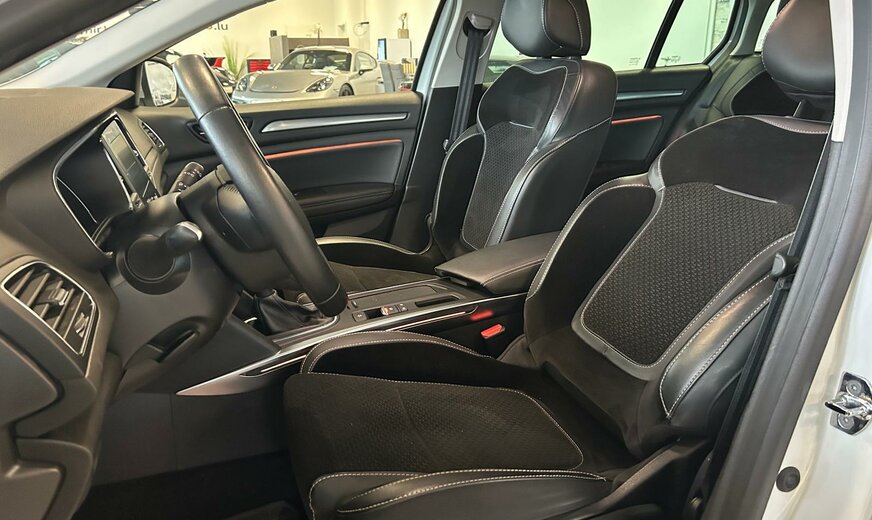Renault Megane Sonderausstattung: Reserverad in Fahrbereifung, Sonderlackierung Perlmutt-Weiß Weitere Ausstattung: Airbag Beifahrerseite abschaltbar, Airbag Fahrer-/Beifahrerseite, Ambiente-Beleuchtung, Antischlupfregelung (ASR), Audio-Navigationssystem R-Link 2 mit Touchscreen-Farbdisplay, Außenspiegel lackiert, Außentemperaturanzeige, Bremsassistent, City-Paket, Dachreling, Easy-Paket, Eco Mode (Fahrmodusschalter), Energierückgewinnung (Energy Smart Management), Fahrassistenz-System: Berganfahr-Assistent (HSA), Fahrassistenz-System: Fernlichtassistent, Fahrassistenz-System: Multi-Sense (Fahrmodusschalter), Fahrassistenz-System: Verkehrszeichenerkennung, Family-Paket, Gepäck-/Laderaum-Unterteilung aufklappbar, Gepäckraumabdeckung / Rollo, GT-line-Paket, Heckleuchten LED, Heckscheibe heizbar, Innenspiegel mit Abblendautomatik, Isofix-Aufnahmen für Kindersitz, Karosserie: 5-türig, Komfort-Paket, Kopf-Airbag-System hinten, Kopf-Airbag-System vorn, Lendenwirbelstütze Sitz vorn links, Lenksäule (Lenkrad) höhenverstellbar, Lenksäule (Lenkrad) längsverstellbar, Look-Paket, Luftdüsen im Fond, Mittelarmlehne vorn mit Ablagefach, Motor 1,3 Ltr. - 117 kW TCE, Otto-Partikelfilter (GPF), Raucher-Paket, Reifendruck-Kontrollsystem, Rücksitz-Klappsystem (Easybreak-System / Easyflex), Rücksitzbank geteilt/klappbar (1/3-2/3), Safety-Paket, Schadstoffarm nach Abgasnorm Euro 6d-TEMP, Scheinwerfer Full-LED, Seitenairbag vorn, Sitz vorn links höhenverstellbar, Sitz vorn rechts höhenverstellbar, Sitzbezug / Polsterung: Stoff, Sonnenblenden mit Spiegel (beleuchtet), Sportsitze mit integrierten Kopfstützen, Start/Stop-Anlage, Tachometeranzeige (Instrumente) digital, Touchscreen (7,0 Zoll), Warnanlage für Sicherheitsgurte