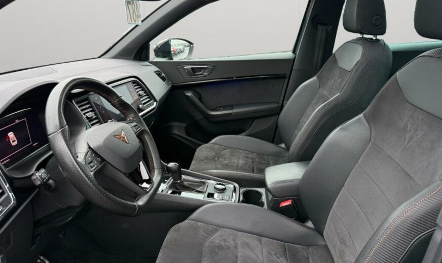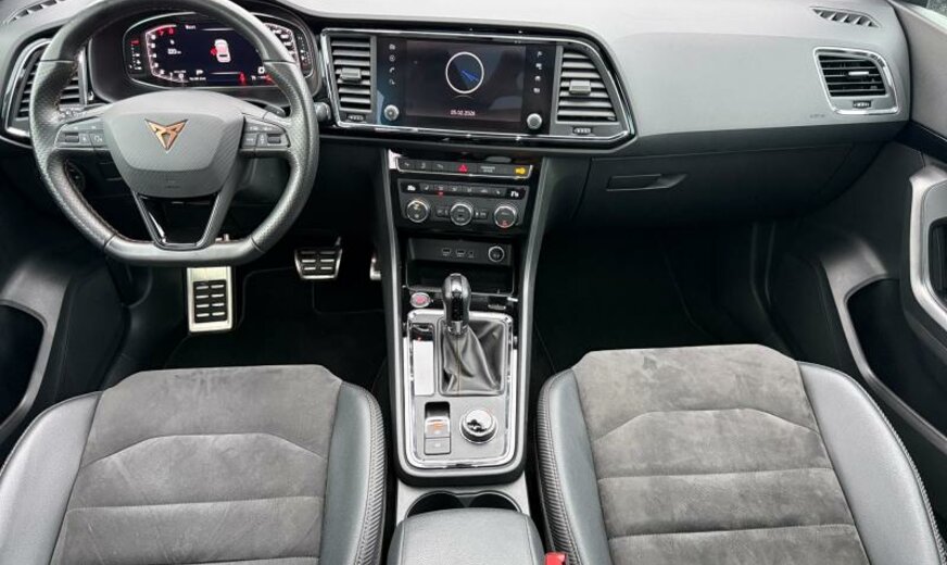 allumage des phares automatique/Coming Home, système d\\'entrée et de démarrage sans clé, protection sous mécanique, 8 haut-parleurs, téléphonie confort, enjoliveurs bas de caisse éclairés, sièges av confort, prares cpl LED, gicleurs lave-glace chauffants, système lave-phares, réglage hauteur phares automatique, sièges av réglables en hauteur, pièces de décoration intérieure chromées, accoudoir av, éclairage périphérique, pédales en aluminium, lampe de lecture av/ar, pare-soleil éclairé, Active Info Display, VOLANT MULTIF+SELECT, boîtiers des rétroviseurs et poignées des portes dans la couleur du véhicule, freinage d\\'urgence City, alternateur 140 A, becquet ar, pare-chocs Sport Cupra, 1984 cc 2,0 L 221 KW, liquide de refroidissement R1234YF, réservoir à charbon actif EVAP , 7 vitesses DSG, AWD, 8 J x 19 Alu, boulons de roue avec antivol, train ar \\Multi-Link\\, régulation adaptative de la suspension DCC avec régulation de l\\'amortissement, freins à disque av 340x30, freins à disque ar 310x22 noir, prétensionneurs à l\\'arrière, airbag pour les genoux, galerie de pavillon noire, garnissage des portes en Alcantara, enjoliveurs cadre vitre noir brillant, élargisseurs d\\'aile peints, entretien à intervalle flexible Long Life QI6