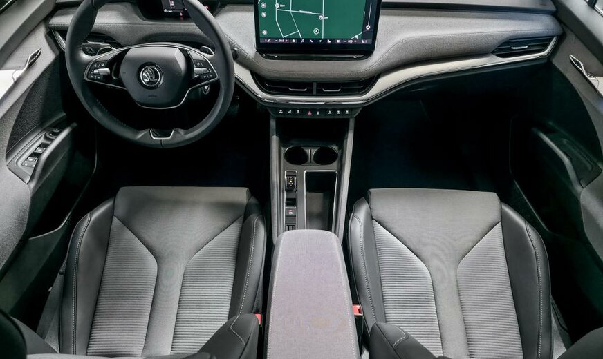 Cette Skoda Enyaq 85 Corporate offre une expérience de conduite confortable et sûre grâce au volant en cuir multifonction à 2 branches chauffant avec palettes et au Driving Mode Select.