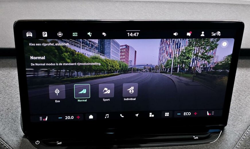 Deze Skoda Enyaq 85 Corporate biedt een comfortabele en veilige rijervaring dankzij het 2-spakig multifunctioneel verwarmbaar lederen stuur met peddels en Driving Mode Select.
