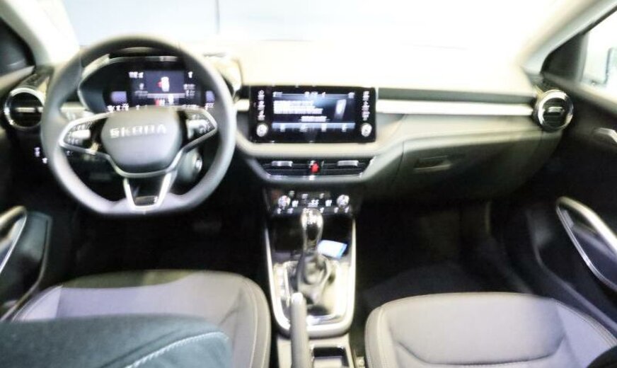 protection rétroviseurs peints, sélection du profil de conduite, 3-ème appui-tête ar, App-Connect, 6 haut-parleurs, radio avec récepteur digital, allumage des phares automatique/Coming Home, indicateur de niveau d\\'eau du système lave-glace, sièges av confort, siège avg réglable en hauteur, siège avd réglable en hauteur, dossiers ar séparés, accoudoir av, porte-lunettes, levier de frein à main en cuir, pommeau de vitesse en cuir, fixation siège enfant av/ar, réservoir à charbon actif EVAP , caméra av, services Online, 999 cc 1,0 L 85 KW, protection sous mécanique, 7 vitesses DSG, indicateur multifonctions FPK, freinage d\\'urgence City, GreenLine Technology, freins à tambour ar 228x42, 6 J X 16 ALU, encarts décoratifs gris, protection étendue des piétons avec prévoyance, entretien à intervalle flexible Long Life QI6, freins av 276x24