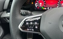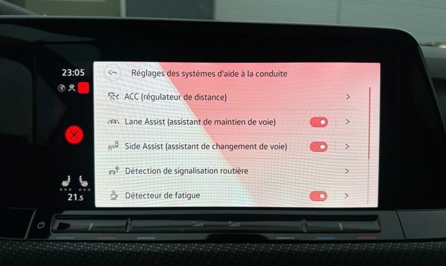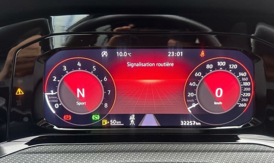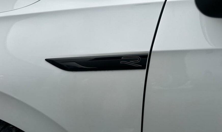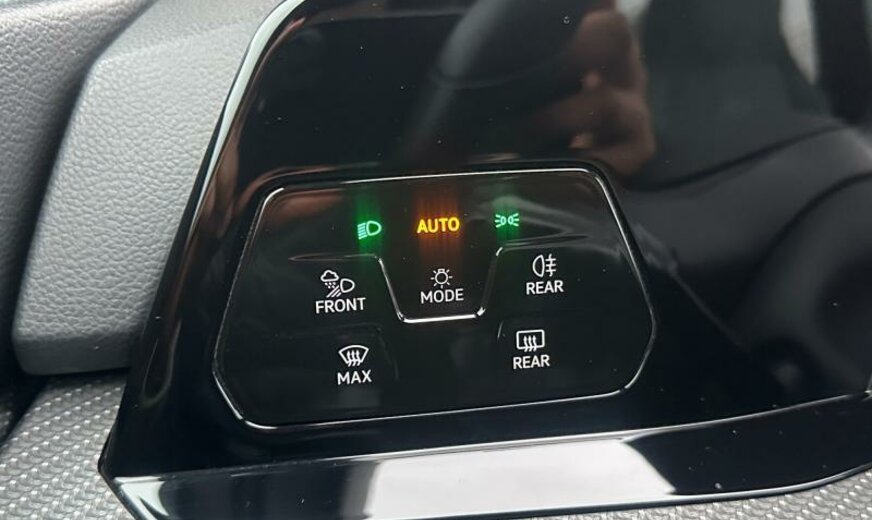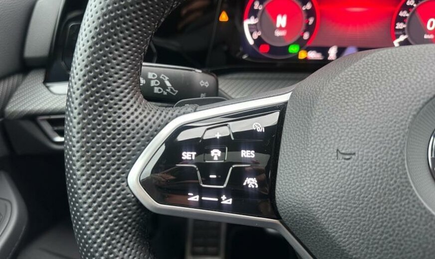 pack Chrome, lunette ar et vitres latérales ar foncées, grille de calandre et poignées de portes éclairées, glace du rétroviseur conducteur asphérique, antenne AM/FM, Car2X communication, services Online, interface téléphonique Comfort, garnissage tissu gris \\\"Sardegna\\\", siège passager réglable en hauteur, boulons de roue avec antivol, avertisseur d\\\'oubli du port des ceintures av/ar, accoudoir central ar, pédales en aluminium, 1498 cc 1,5 L 110 KW, 7 vitesses DSG, suspension ar à 4 bras, suspension sport, blocage électronique du différentiel, entretien à intervalle flexible Long Life QI6, JANTES 7,5J X 18 ALU, roue de secours temporaire, ceintures de sécurité ar avec prétensionneurs, caméra frontale pour assistant à la conduite, assistant de trajectoire avec assistant de files, transmission hybride M-HEV, freins av 288x25, freins ar 272x10, Front Assist, R-Line, réservoir à charbon actif EVAP , 3 couches nacrée