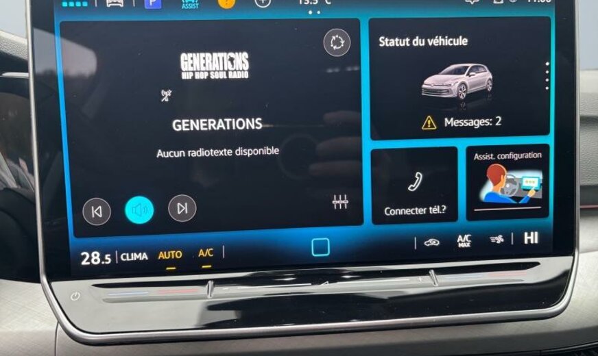 pack Chrome, poignées de portes éclairée, lunette ar et vitres latérales ar foncées, haut-parleurs 6+1, antenne AM/FM, services Online, interface téléphonique Comfort, garnissage tissu \\\"Maze\\\", siège passager réglable en hauteur, boulons de roue avec antivol, avertisseur d\\\'oubli du port des ceintures av/ar, accoudoir central ar, 1498 cc 1,5 L 85 KW, entretien à intervalle flexible Long Life QI6, 7 J x 16 Alu \\\"NORFOLK\\\", ceintures de sécurité ar avec prétensionneurs, caméra frontale pour assistant à la conduite, assistant de trajectoire avec assistant de files, airbag central entre les sièges av, freins av 288x25, freins ar 272x10, Front Assist, Hatchback Berline , réservoir à charbon actif EVAP
