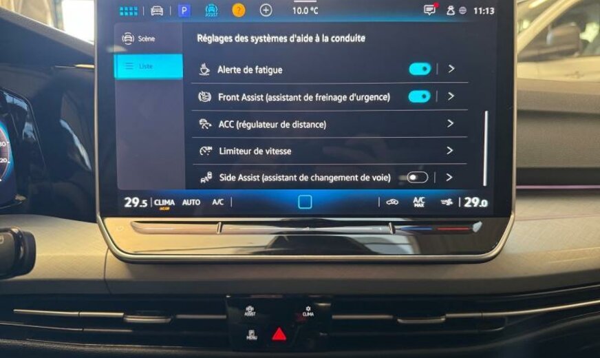 pack Chrome, poignées de portes éclairée, lunette ar et vitres latérales ar foncées, haut-parleurs 6+1, antenne AM/FM, services Online, interface téléphonique Comfort, garnissage tissu \\\"Maze\\\", siège passager réglable en hauteur, boulons de roue avec antivol, avertisseur d\\\'oubli du port des ceintures av/ar, accoudoir central ar, 1498 cc 1,5 L 85 KW, entretien à intervalle flexible Long Life QI6, 7 J x 16 Alu \\\"NORFOLK\\\", ceintures de sécurité ar avec prétensionneurs, caméra frontale pour assistant à la conduite, assistant de trajectoire avec assistant de files, airbag central entre les sièges av, freins av 288x25, freins ar 272x10, Front Assist, Hatchback Berline , réservoir à charbon actif EVAP