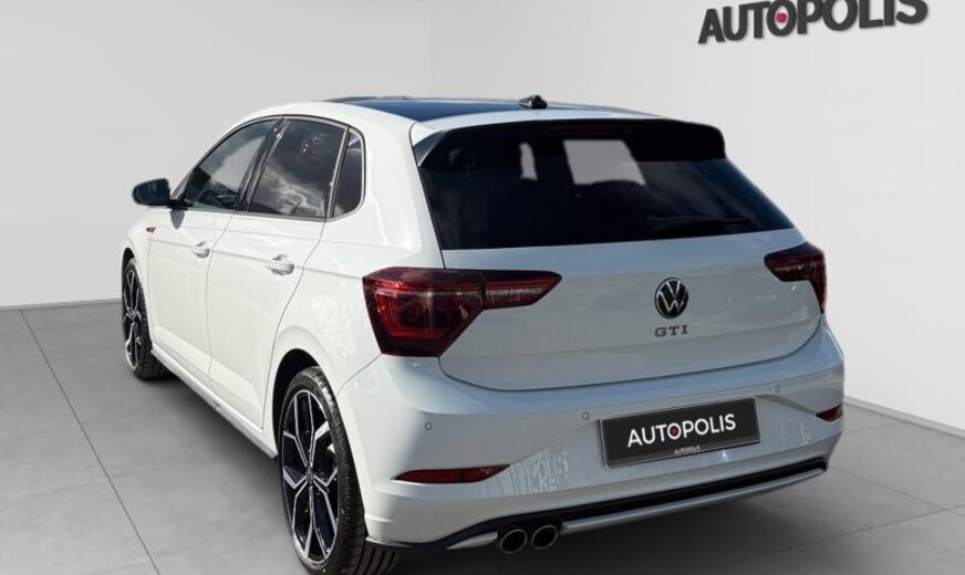 VOLKSWAGEN POLO VI GTI 207 CV\r\nBoite Automatique DSG\r\nSystème de Navigation GPS\r\nToit ouvrant\r\nIQ.Light et IQ.Drive\r\nJantes aluminium 18 pouces\r\nCouleur : Blanche\r\nMoteur : 2.0 L essence\r\nTransmission : Automatique 7 rapports\r\nSièges avant chauffants\r\nSiège arrière avec Isofix\r\nVerrouillage centralisé à distance\r\nÉclairage d’ambiance\r\nRadio numérique\r\nVitres teintées\r\nStart/Stop automatique\r\nÉquipements et aides à la conduite \r\nABS\r\nRégulateur de vitesse\r\nDétection des panneaux routiers\r\nAssistant au freinage d’urgence\r\nAvertisseur d\\\'angles mort\r\nMaintien de voie\r\nCapteurs avant et arrière\r\nPalettes de changement de vitesse au volant\r\nAndroid Auto \r\nApple CarPlay \r\nBluetooth\r\nToit ouvrant\r\nSpoiler arrière\r\nAlarme antivol\r\nIQ.Light et IQ.Drive\r\nClignotants dynamiques\r\nInformations complémentaires :\r\nVéhicule non-fumeur\r\nNous parlons : \r\nFrançais\r\nEnglish\r\nAllemand \r\nItaliano\r\nPortuguês \r\nSrpsko-Hrvatski\r\nReprise de votre véhicule possible\r\nFinancement possible sur place : Crédit classique ou Crédit ballon\r\nÉco-taxe France non incluse\r\nSous réserve d’erreur dans l’annonce