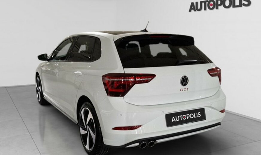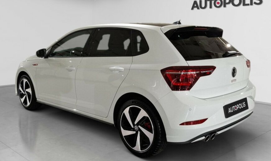VW Polo Informations générales Marque: Volkswagen Modèle: Polo Type: 2.0 TSI OPF DSG GTI Année du modèle: 2024 Code du modèle: MKVI Informations techniques Couple: 320 Nm Commande: Traction avant Réservoir de carburant: 40 litres Accélération (0-100): 6,5 s Vitesse de pointe: 242 km/h Mesures Dimensions (LxlxH): 407 x 175 x 143 cm Empattement: 254 cm Poids Poids à vide: 1.371 kg Capacité de charge: 439 kg PBV: 1.810 kg Poids de traction max.: 1.200 kg (non freiné 680 kg) Environnement Ãmission de CO2: 148 g/km Label énergétique: E Classe d'émission: Euro 6e Consommation Consommation moyenne de carburant: 6,5 l/100km Garantie Garantie: Autopolis Occasion (â¬0) Garantie: 12 mois Paquets de livraison Emballage de livraison inclus: Autopolis Occasion (â¬0) Cet emballage de livraison contient: Autopolis Occasion (â¬0) (12 mois de garantie) Identification Numéro de référence: PU087336 Numéro d'immatriculation: PU0873 Numéro de production: PU087336 VOLKSWAGEN POLO VI GTI 207 CV Boite Automatique DSG Système de Navigation GPS Toit ouvrant IQ.Light et IQ.Drive Jantes aluminium 18 pouces Couleur : Blanche Moteur : 2.0 L essence Transmission : Automatique 7 rapports Sièges avant chauffants Siège arrière avec Isofix Verrouillage centralisé à distance Ãclairage dâambiance Radio numérique Vitres teintées Start/Stop automatique Ãquipements et aides à la conduite ABS Régulateur de vitesse Détection des panneaux routiers Assistant au freinage dâurgence Avertisseur d\'angles mort Maintien de voie Capteurs avant et arrière Palettes de changement de vitesse au volant Android Auto  Apple CarPlay Bluetooth Toit ouvrant Spoiler arrière Alarme antivol IQ.Light et IQ.Drive Clignotants dynamiques Informations complémentaires : Véhicule non-fumeur Nous parlons : Français English Allemand Italiano Português Srpsko-Hrvatski Reprise de votre véhicule possible Financement possible sur place : Crédit classique ou Crédit ballon Ãco-taxe France non incluse Sous réserve dâerreur dans lâannonce Bienvenue chez Autopolis Demandez dès maintenant une offre de reprise - sans aucun engagement - ou planifiez un essai du véhicule d'occasion de votre choix ! Nos conseillers commerciaux sont à votre disposition en ligne, par téléphone, ou directement en showroom. La liste des équipements a été établie avec le plus grand soin. Cependant, il se peut que certains équipements présents sur le véhicule ne soient pas mentionnés, ou que certains éléments indiqués ne soient finalement pas disponibles. Nous vous recommandons de vérifier les équipements importants pour vous avant de conclure votre achat. Cette liste est donnée à titre indicatif.Â