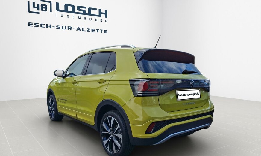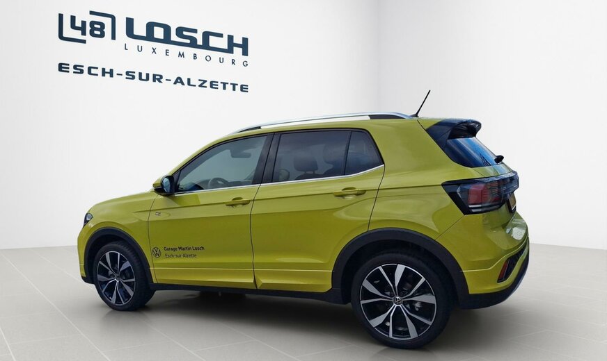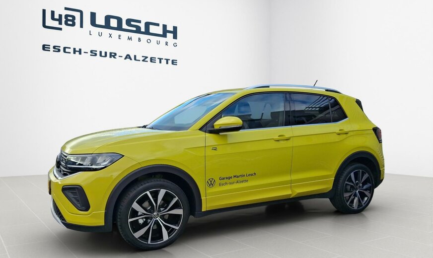 Garantie usine valable 36 mois et/ou 60\\\'000 km à partir de la première date d\\\'immatriculation.\r\n\r\nD315PZ T-Cross R-Line 1.5 TSI 110kw DSG7 \r\n \r\n1C1C Grape Yellow \r\nWS Gris/Noir Titane/Noir/Noir Titane\r\n \r\nPF3 Pack d\\\'assistance \\\"IQ.Drive\\\" \r\nPJ6 Jantes en alliage léger \\\"Misano\\\" - 7 J x 18\\\" - Noires - Pneus 215/45 R 18 \r\nPLA Pack lumière et visibilité, y compris Light Assist \r\nPSH Chauffage de siège \r\nPWF Roue de secours \r\nYKM Code contrôle pour établissement du prix de la mise à jour des modèles 2024 II \r\nYOS Préparé pour We Connect et We Connect Plus ou VW Connect et VW Connect Plus \r\nZBD Fonction de navigation \\\"Discover Media\\\" avec streaming Internet \r\n9JD Version fumeur \r\nEA2 Garantie, durée 3 ans, kilométrage total max. de 60 000 km \r\nQV3 Réception de radio numérique DAB+ \r\n4I3 Système de fermeture et de démarrage sans clé \\\"Keyless Access\\\" sans SAFELOCK \r\n4KF Vitres latérales arrières et lunette arrière surteintées \r\n9AK Climatisation \\\"Air Care Climatronic\\\" avec filtre actif combiné et régulation de la température sur 2 zones \r\nKA1 Caméra de recul \\\"Rear View\\\"
