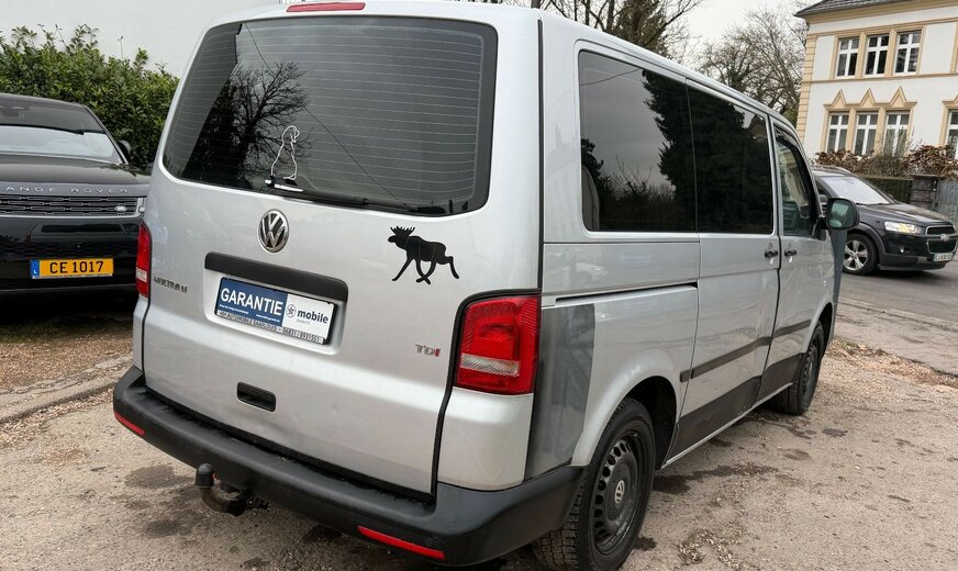 Airbag Fahrer-/Beifahrerseite, Ausführung: Multivan, AuÃenspiegel asphärisch, links, AuÃenspiegel elektr. verstell- und heizbar, AuÃenspiegel konvex, rechts, Bodenbelag im Fahrerhaus: Teppich, Campingtisch, Doppeltonfanfare, Fahrassistenz-System: Bremsassistent (HBA), Fenster im Lade-/FG-Raum: - feststehend, hinten links, Fenster im Lade-/FG-Raum: - feststehend, hinten rechts, Fenster im Lade-/FG-Raum: - feststehend, vorn rechts, Heckklappe mit Verglasung, Heckscheibe heizbar, mit Wischanlage, Heckscheibenwischer, Heizung im Lade-/Fahrgastraum, Innenleuchten im Lade-/FG-Raum: Trittstufenleuchten, Innenraumfilter: Pollenfilter, Karosserie/Aufbau: Bus, Karosserievariante: Normaldach, Leuchtweitenregelung, Make-up-Spiegel links, Make-up-Spiegel rechts, Motor 2,0 Ltr. - 103 kW TDI, Radstand 3000 mm, Reifendruck-Kontrollsystem, Schadstoffarm nach Abgasnorm Euro 5, Scheinwerfer H4, Schiebetür Lade-/Fahrgastraum links entfällt, Schiebetür Lade-/Fahrgastraum rechts, Seitenairbag / Kopfairbag (Curtain-Airbag) vorn, Sitzbezug / Polsterung: Stoff, Sitze im Fahrerhaus: Fahrer- und Beifahrersitz Komfort, Sitze im Lade-/FG-Raum: 2.Reihe, 3er-Sitzbank, Stahlfelgen 7x17, StoÃfänger in Wagenfarbe, Warnanlage für Sicherheitsgurt (Fahrerseite), Wärmeschutzverglasung, Zuheizer, Zul. Gesamtgewicht 3,00 t