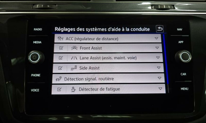 enjoliveurs des vitres latérales blancs, pack Chrome, ouverture et fermeture confort du hayon, 8 haut-parleurs, radio avec récepteur numérique, Infotainment-System MIB3 , gicleurs lave-glace chauffants, combiné instruments Digital, plancher de coffre séparable, pédalier Sport, caméra frontale pour assistant à la conduite, sièges av électrique, 1968 cc 2,0 L 147 KW, 7 vitesses DSG, traitement des gaz d\\\'échappement avec catalyseur SCR, Front Assist avec freinage d\\\'urgence City, freins av 340x30, JANTES 8,5 JX 19 ALU, roue de secours temporaire, services Online, interface téléphonique Comfort, assistant de trajectoire avec assistant de files, airbag pour les genoux, entretien à intervalle flexible Long Life QI6, ceintures de sécurité ar avec prétensionneurs, R-Line, galerie de pavillon chromé, sélection du profil de conduite, becquet ar\r\n\r\n-- sous réserve d erreur d encodage --\r\n