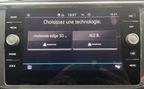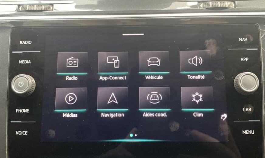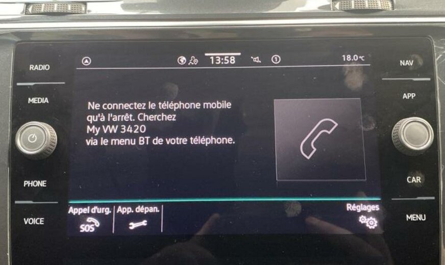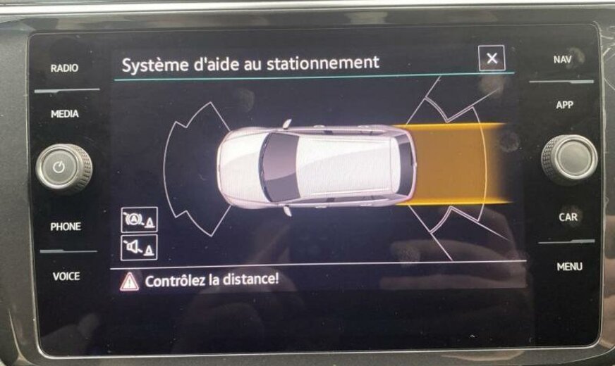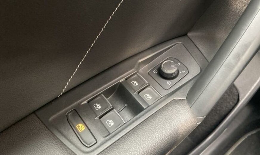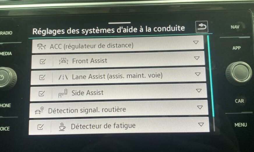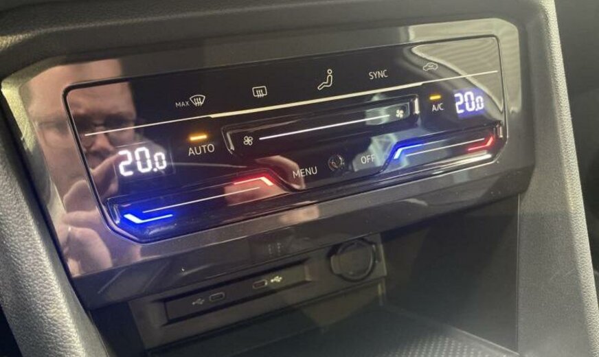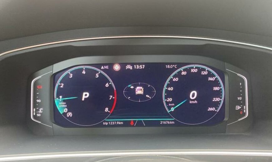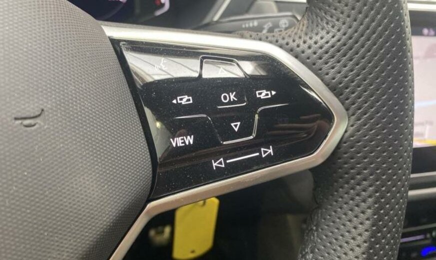 enjoliveurs des vitres latérales blancs, pack Chrome, 8 haut-parleurs, radio avec récepteur numérique, Infotainment-System MIB3 , combiné instruments Digital, tiroir sous les sièges av, plancher de coffre séparable, pédalier Sport, caméra frontale pour assistant à la conduite, console pavillon avec vide-poches, dossier siège passager rabattable, 1498 cc 1,5 L 110 KW, 7 vitesses DSG, Front Assist avec freinage d\\\'urgence City, roues av motrices traction , suspension sport, réservoir à charbon actif EVAP , barre stabilisatrice ar 21,7x3,6 mm, 8,5 J x 20 Alu, roue de secours temporaire, pré-équipement GSM, services Online, boulons de roue avec antivol, airbag pour les genoux, entretien à intervalle flexible Long Life QI6, ceintures de sécurité ar avec prétensionneurs, R-Line, galerie de pavillon noire, becquet ar