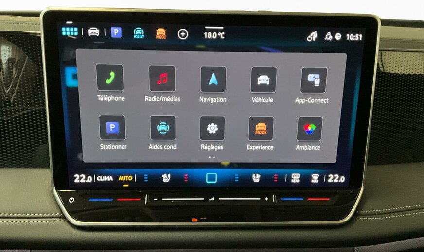 B0B0Gris Dauphin Métallisé\r\nAPSoul/Soul/Noir/Ceramique\r\nPDAPack Design\r\nPE5Pack confort incluant la fonction mémoire pour l\\'assistant de stationnement\r\nPJDJantes en alliage léger \\Napoli \\ - 7,5 J x 18\\ - Noires - Pneus Airstop® 235/55 R18\r\nPLAPhares LED-Plus\r\nRBASystème de navigation \\Discover Media\\ avec \\Streaming Internet\\\r\nW01Pack Start\r\nWL1Pack Cuir \\Varenna\\ avec sièges ergoActive Plus à l\\'avant\r\nWN3Pack Assistance avec régulateur de distance\r\nYOSPréparé pour We Connect et We Connect Plus ou VW Connect et VW Connect Plus\r\n1M9Dispositif d\\'attelage rabattable, avec déverrouillage élec.; avec assist. aux manoeuvres avec remorque Trailer Assist