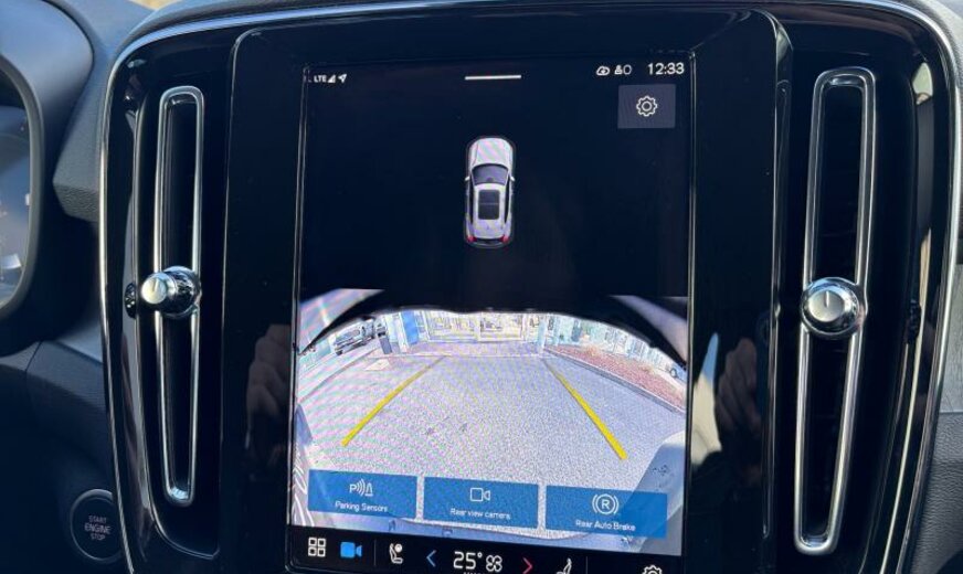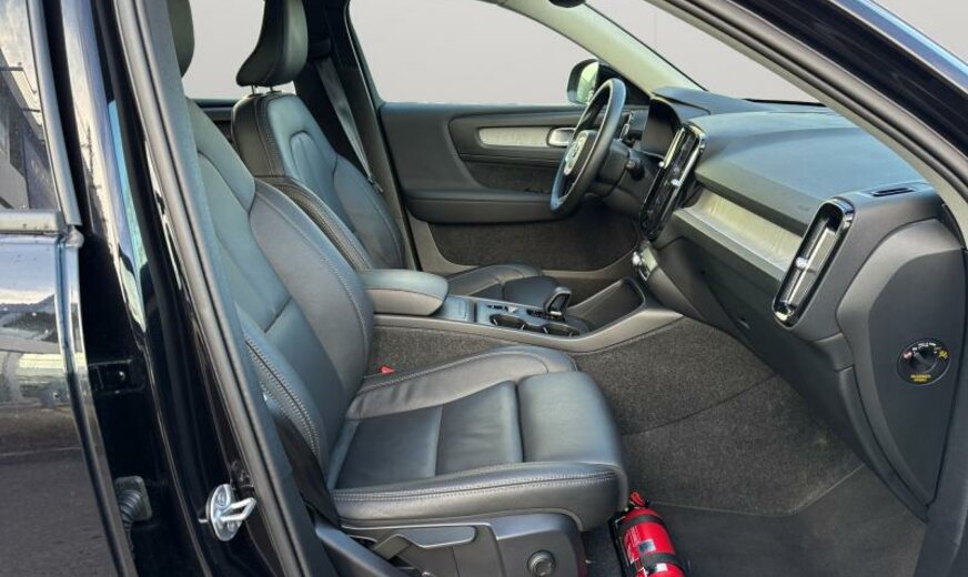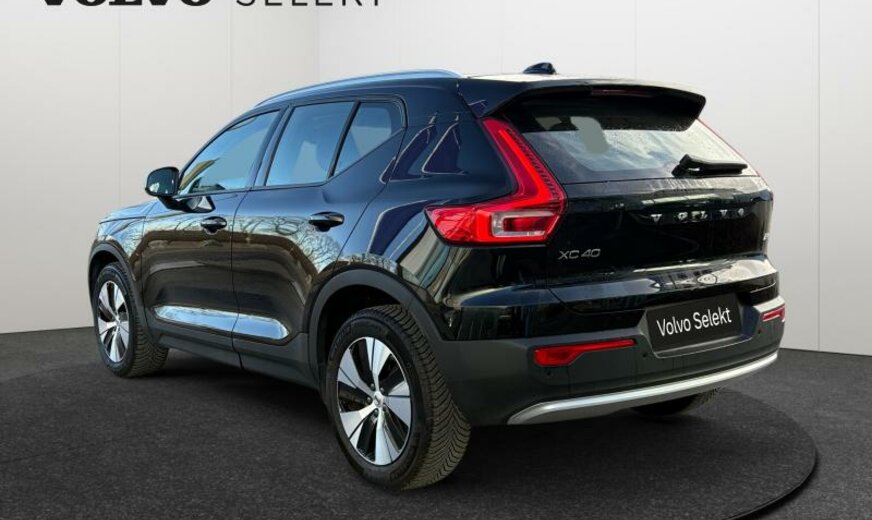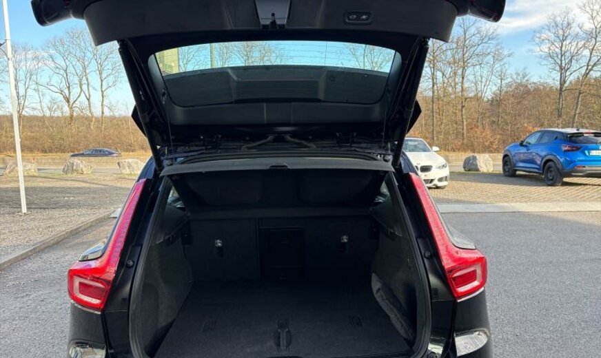 Volvo XC40 rétroviseurs jour/nuit automatique, grille de calandre active Shutter-System, système audio High Performance, sécurité enfants électrique, ceintures de sécurité de type B, poignées de portes éclairées, moulures de vitres standard, pare-chocs av/ar Type Momentum, ouverture du hayon à mains libres de génération 2, sigle chauffant, système de caméra périphérique, roues av motrices traction , airbag pour les genoux, 7,5 J x 19 Alu 5 branches Diamond cut noir, 7,5 J x 18 Alu 10 branches, galerie de pavillon, sortie d'échappement double cachée, Radar Argus, Thaïlande, 1969 cc 2,0 L 120 KW essence / 10 KW électrique B3 , pare-chocs av livré peint, 2 couches mica