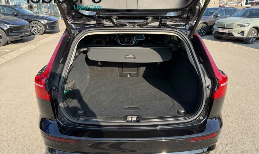 Volvo V60 déflecteur d'air court, capot moteur avec système Pop-UP, Air Quality Multifilter, sécurité enfants électrique, rétroviseurs livrés peints, ethylomètre, rétroviseurs jour/nuit automatique, Blind Spot Information System, capteur de mouvement intérieur, Audio System Premium Sound PRO, batterie supplémentaire 6 48 V, appuis lombaires av réglables, système lave-phares, garnissage Metal Mesh, siège conducteur rallongé, siège passager réglable électrique, poignées de portes éclairées, grille de calandre active Shutter-System, Gent Belgique , grille de calandre Type R-Design, Radar Argus, banquette ar chauffante, 1969 cc 2,0 L 145 KW essence / 10 KW électrique B4 , pompe à carburant longue, enjoliveurs vitres latérales noir brillant, capteurs latéraux d'aide au parking peints, roues av motrices traction , suspension Four C, ouverture du hayon à mains libres, 8 J x 18 Alu 5 branches doubles diamond noir, roue de secours temporaire 18, écrans bas de caisse éclairés, garniture de porte en cuir, galerie de pavillon, 235/40 R 19 .. W, pare-chocs Type R-Design, 7 vitesses DCT