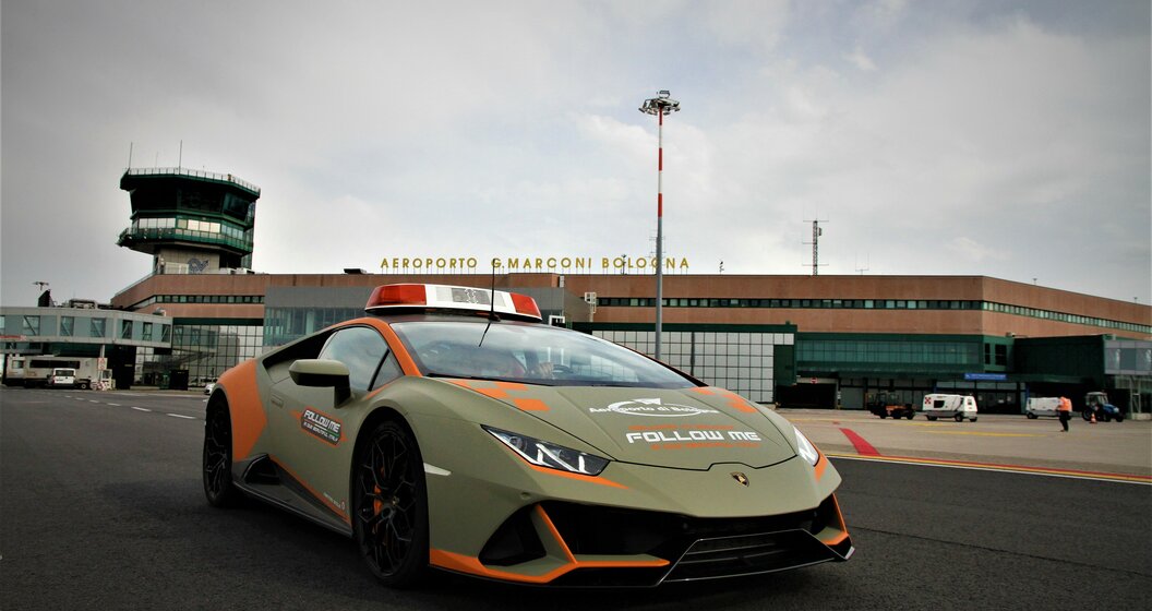 De luchthaven van Bologna en de Italiaanse sportwagenfabrikant, waarvan de hoofdzetel zich op een steenworp bevindt, hernieuwen voor de zevende keer hun partnerschap. De Huracan Evo is speciaal geprepareerd voor zijn nieuwe rol: een matgroene kleur, felgekleurde contrastelementen en de slogan "Follow Me In Our Beautiful Country". Zwaailichten en een radioverbinding met de de controletoren hebben deze Lambo helemaal klaargestoomd voor zijn luchthavenjob. Of de bestuurder vaak de kans zal krijgen om de spierballen van de 640 pk sterke 5,2-liter-V10 te laten rollen, is een andere zaak.