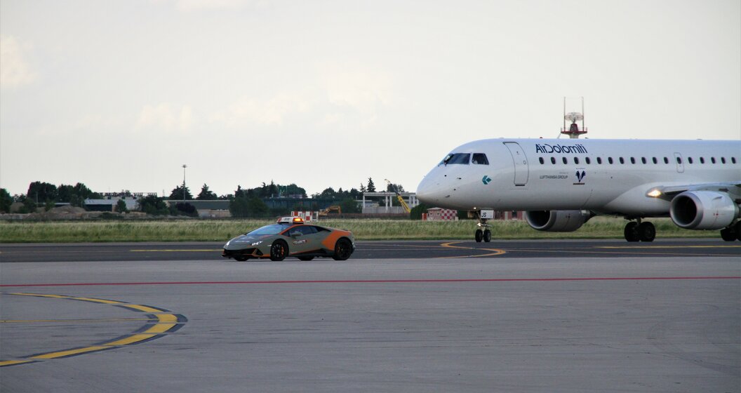 Deze Lamborghini begeleidt… vliegtuigen