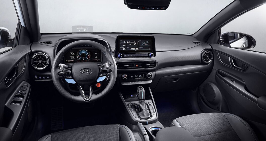 Qua stijl onderscheidt de sportievere Kona N zich door bredere openingen in de bumper, een gespierdere bodykit en een imposante diffusor met dubbele uitlaatpijp achteraan. Aan boord maken de bekleding met N-logo en het stuurwiel met zijn blauwe peddels - de referentiekleur van de Hyundai N - het verschil.