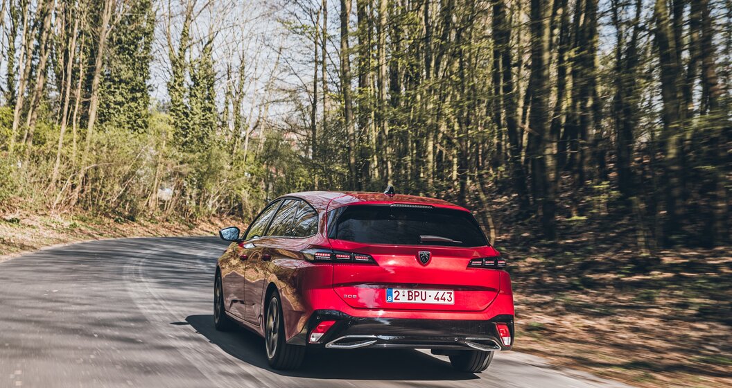 De SW neemt ook het technische gedeelte van de berline over. De auto is echter 26 cm langer, verdeeld over de achteroverhang (+21 cm) en het centrale gedeelte (+5,5 cm) om een maximale leefruimte te bieden. De beenruimte op de achterbank is bijzonder royaal en de bagageruimte heeft nog steeds een van de grootste nuttige volumes in zijn klasse: 608 liter. Het volume boet wat in tegenover het vorige model (660 liter), maar de praktische aspecten zijn nog steeds aanwezig: de zetels kunnen in één beweging neergeklapt worden voor een vlakke laadruimte, en dankzij de verschuifbare vloer kan de laaddrempel worden verhoogd, wat altijd praktisch is bij het vervoeren van zware voorwerpen. Voorwaarde is wel dat je niet kiest voor een van de plug-inhybrides (180 of 225 pk). Helaas beperkt de plaatsing van de batterij in de dubbele bodem van de bagageruimte dan de modulariteit, maar ook het volume, dat ongeveer 60 liter lager ligt. Iedereen zal voor zichzelf de situatie moeten taxeren naargelang zijn of haar behoeften... of de clausules van het bedrijfswagencontract, een sector waar deze 308 SW ongetwijfeld een van de drijvende krachten wordt. Met bijzonder lage CO2-niveaus (25 tot 30 gr/km WLTP) zullen deze hybride versies waarschijnlijk de enige zijn die door veel bedrijven aan hun werknemers worden aangeboden.