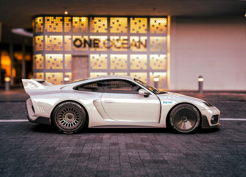Dit is dus de RR1, voor Rezvani Retro n°1. De RR1 is gebaseerd op de huidige generatie van de Porsche 911 (992) en is een grondige transformatie van de Duitse sportwagen, met een uiterlijk waarin de toekomst en het verleden van het merk samenkomen. Over het geheel genomen zijn de lijnen van de 911 duidelijk herkenbaar. De voorkant is voorzien van de koplampen van de elektrische Taycan, terwijl de achterkant een moderne herinterpretatie is van de fabelachtige raceauto 935 die Porsche zelf een paar jaar geleden een nieuwe interpretatie gaf. Rezvani biedt drie mechanische versies aan, uiteraard met Porsches boxermotor, maar opgevoerd tot 558 (Carrara S-motor), 573 (GT3-motor) en 760 pk (Turbo S-motor). En de prijs? Vanaf 149.000 dollar. De Porsche-donorbasis niet inbegrepen natuurlijk.