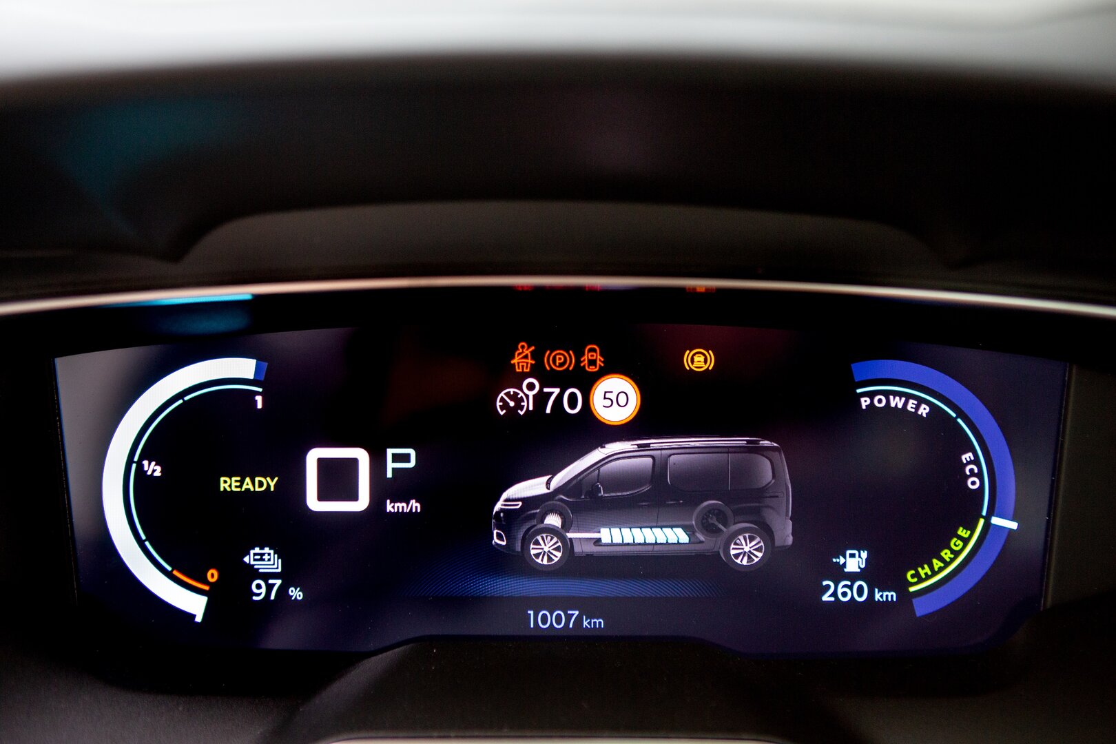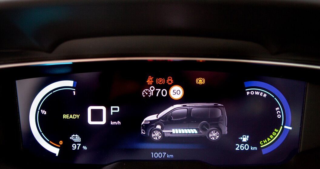 Naast zijn onbetwistbare praktische voordelen biedt deze ë-Berlingo een uitstekend dempingscomfort. Dat draagt bij tot de sereniteit aan boord, mee opgewekt door de afwezigheid van enig motorgeluid. Er zijn drie rijmodi beschikbaar, waarbij 'Normaal' het meest geschikt is voor dagelijks gebruik. 'Eco' optimaliseert de actieradius en 'Power' dient voor ritten onder zware belasting.