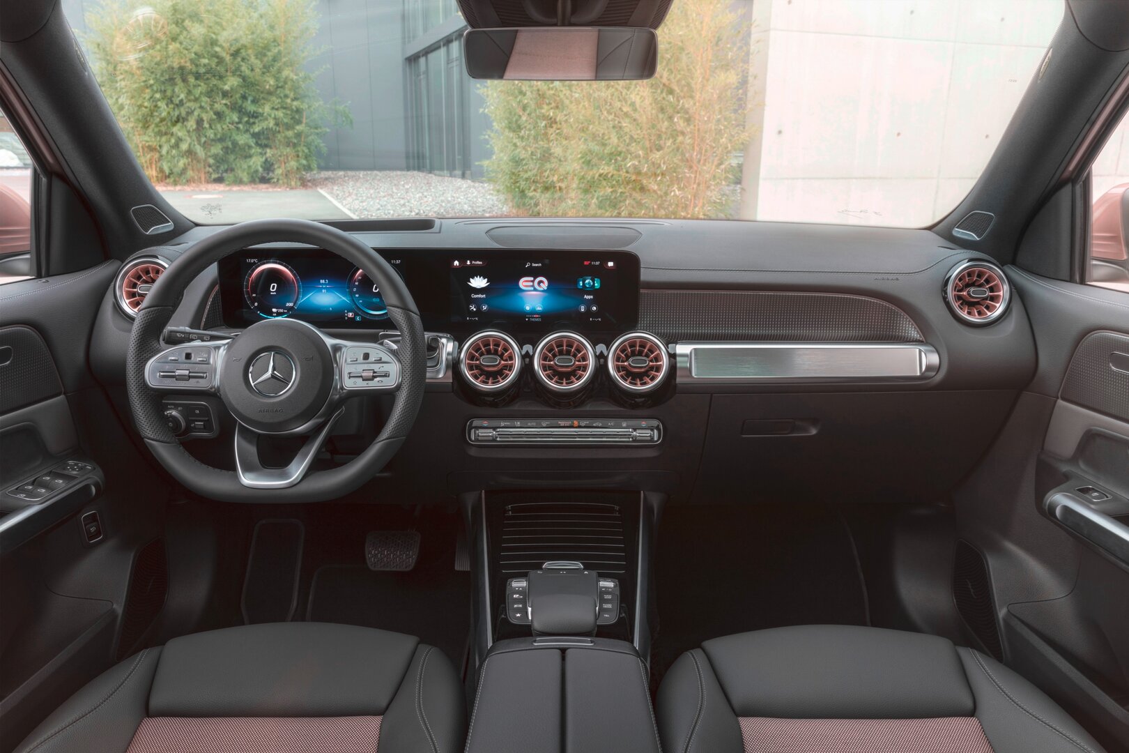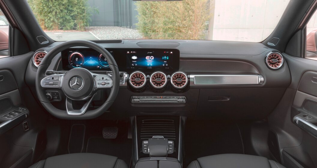 Terwijl Mercedes voor de EQC een iets ander dashboard ontwierp dan voor de GLC, is dat van de EQB precies hetzelfde als dat van de GLB. Qua design althans, want er zijn specifieke sierstrips en inzetstukken verkrijgbaar. In koper, bijvoorbeeld, een kleur die wordt geassocieerd met de wereld van de elektriciteit.