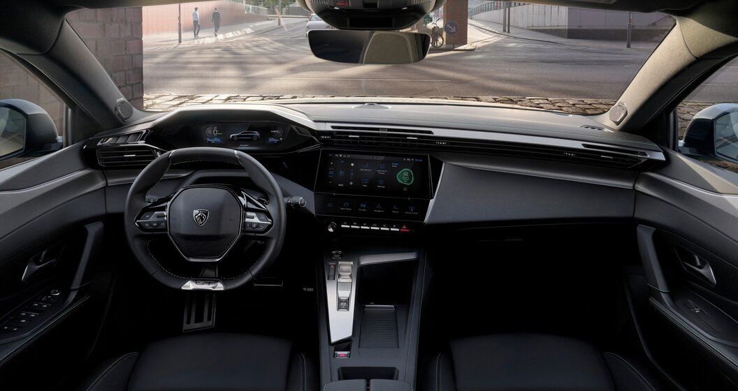 Voor het overige zijn het interieur en de i-Cockpit identiek aan de sedan, net als de comfort- (connectiviteit, multimedia, enz.) en veiligheidsvoorzieningen (semi-autonoom rijden op de snelweg, enz.).