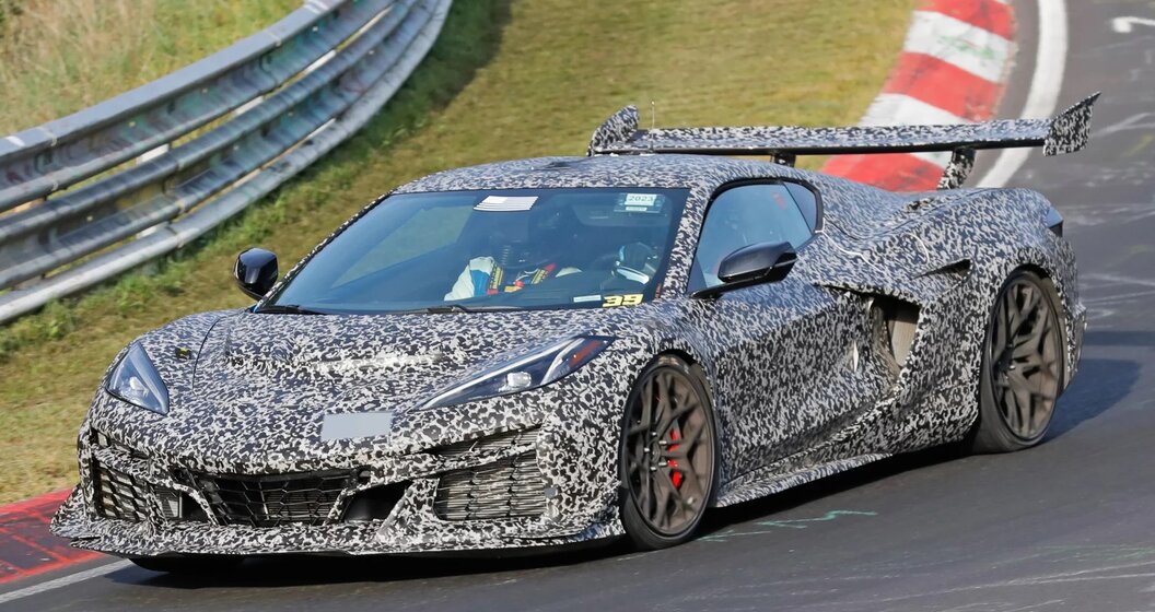 Dit wordt het profiel van de langverwachte ZR1, de extreme versie van de Corvette, die zijn plaats zal innemen boven de al verbluffende Z06, in afwachting van een versie die volgens de geruchten nog beestachtiger is, de Zora, genoemd naar de 'vader' van de originele Corvette. Volgens steeds nauwkeurigere geruchten zal de Corvette ZR1 de natuurlijk geaspireerde 5,5 liter-V8 van de Z06 overnemen, die al 680 pk levert. Gevoed door twee royale turbo's zou deze motor in de ZR1 meer dan 850 pk ontwikkelen, een vermogen dat alleen via een achttrapsautomaat naar de achterwielen wordt gestuurd. Twee dingen lijken deze aankondigingen te bevestigen: de enorme achterspoiler die te zien was op de gecamoufleerde ZR1's die door 'spionnen' op de gevoelige plaat werden vastgelegd, en de teaservideo die gisteren werd vrijgegeven en waarin we een V8 met bliksemsnelle toeren horen. Wordt vervolgd...