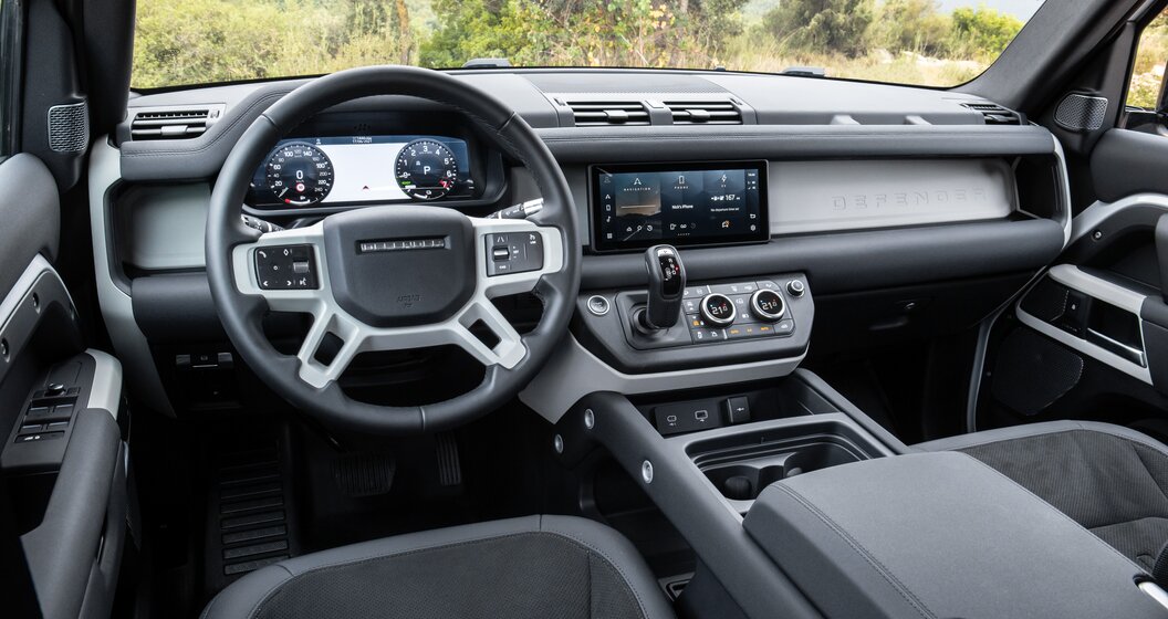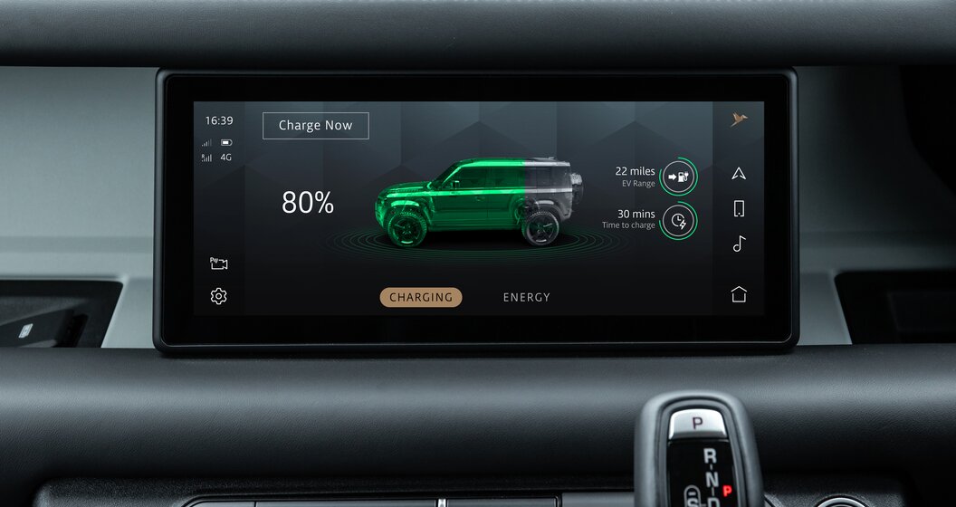 Deze ingreep, evenals de aanwezigheid van een tweede vulklep met daarachter een stekker voor het laden, zijn de enige punten die deze Defender onderscheiden. Met ook nog een paar menu's in het infotainmentsysteem die de werking van de hybride aandrijflijn uitbeeldt.
