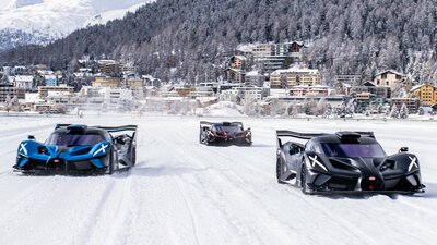 Een Bugatti Bolide zien is al een gebeurtenis. Drie tegelijk zien grenst aan een wonder. Ze zien driften op Zwitsers ijs? Dat is precies het onwaarschijnlijke spektakel dat St. Moritz bood.